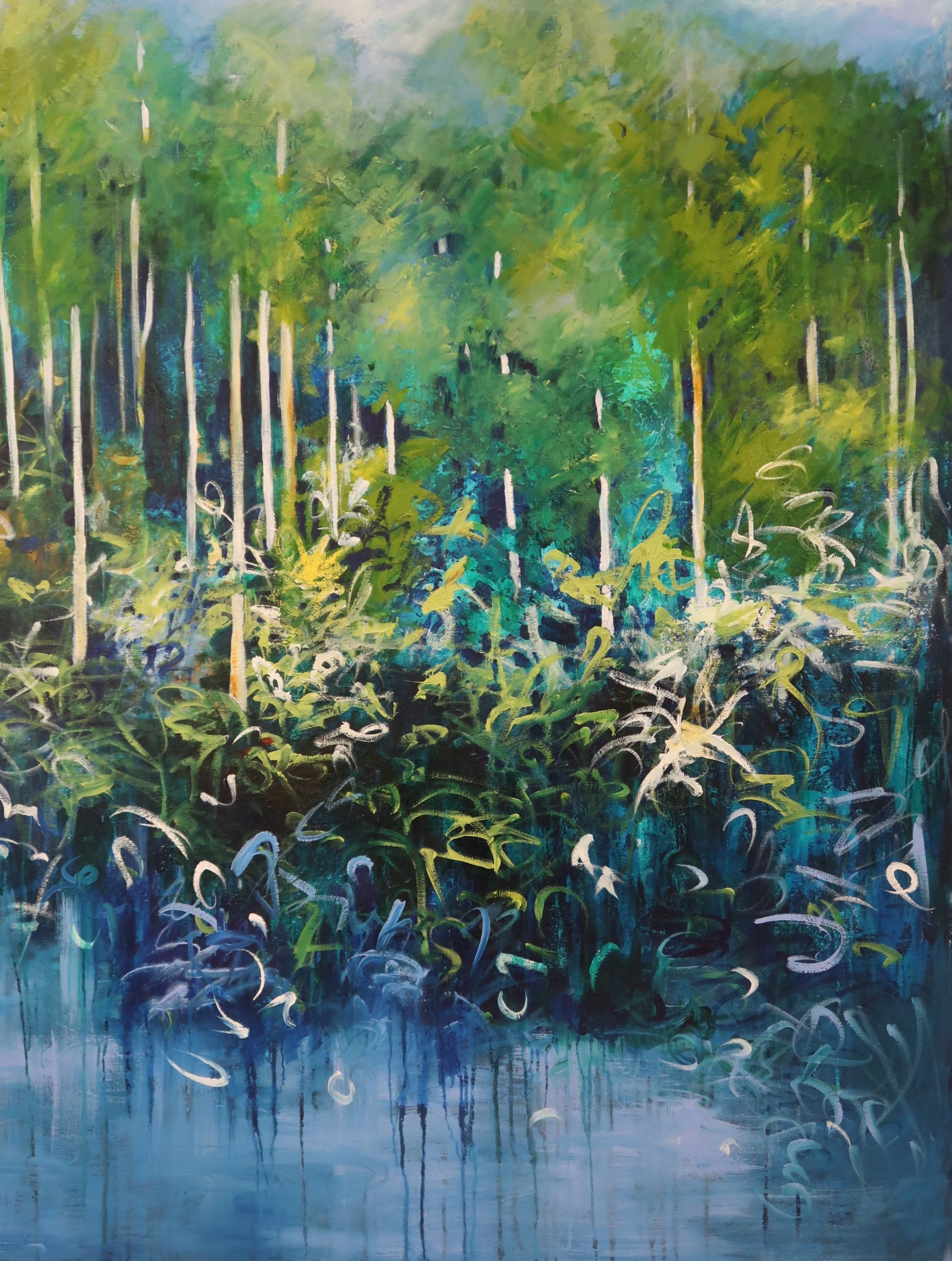 Blue Harmony by Maria Cross is all about being in the depth of a rainforest, surrounded by beautiful foliage, the sound of running water and tranquility .Using the Feng Shui colour principle, blue represents peace and harmony.Several layers of vibrant acrylic paint applied to a quality stretched canvas – the thick sides of the canvas have been painted white. This painting has also been sealed with semi -gloss varnish to enhance the vibrancy of colours and to protect your painting from UV light. (Please note these images may not be to scale, please check your dimensions)Your new painting will arrive snuggly wrapped, wired and straight out of the box ready to hang and enjoy.