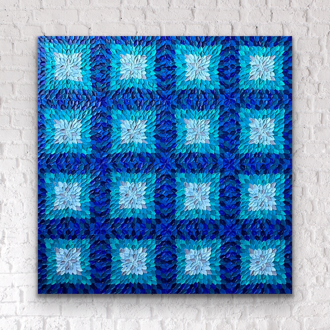 This artwork is from “Kaleidoscope” series, which inspired by patterns from kaleidoscope toy from my childhood. Color palette is inspired by beautiful colors of Australian ocean.