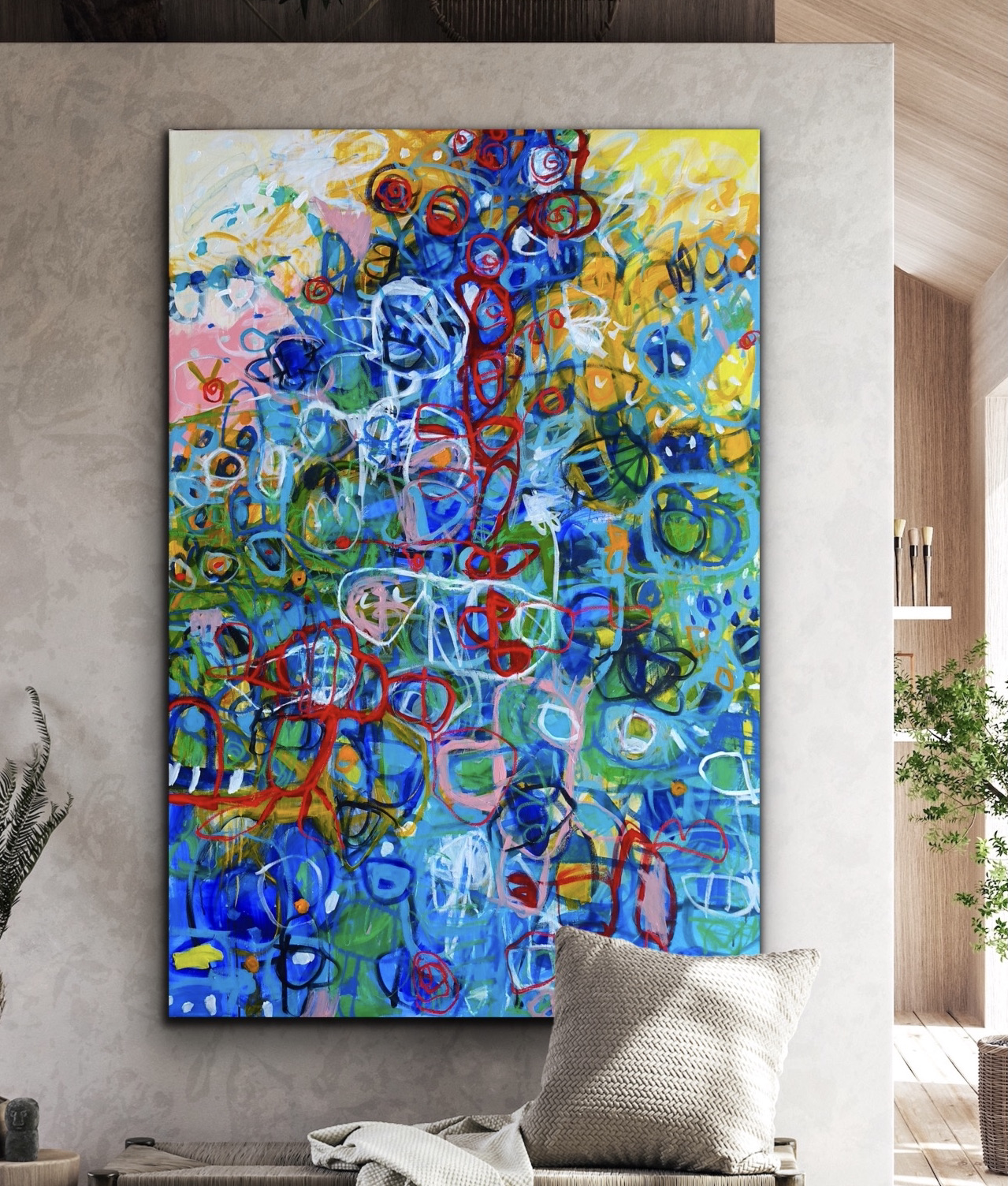 The work is sent Unstretched (this is taken into account in the price) in a roll (a much safer way for paintings to travel) ready for stretching and exterior framing (but an exterior frame isn’t necessary unless you want it)