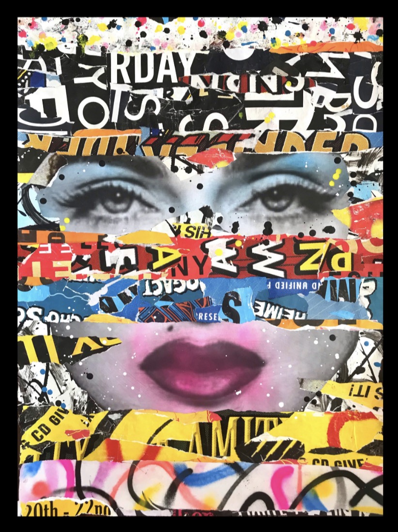 This artwork has a textured finish created by built up layers, paint splatters and torn paper, a visual effect mimicking the look you would see in the street where this effect is created over time. These imperfections are part of the overall look and feel of the finished work.