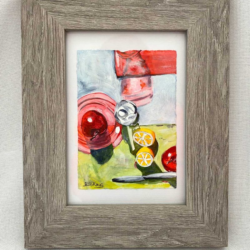 Framed in black under clear acrylic sheet