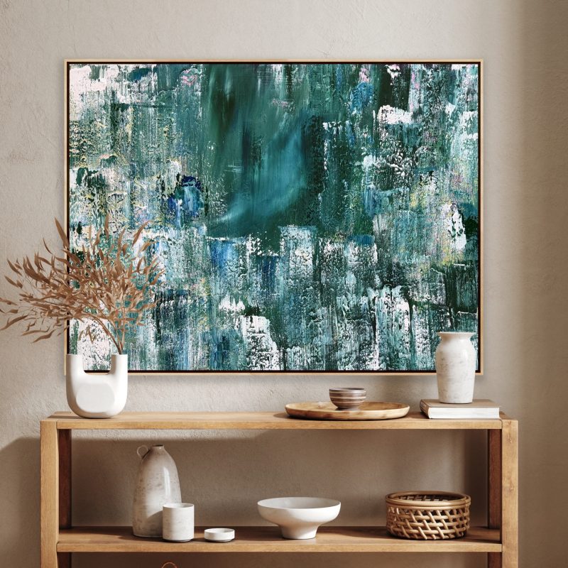 The Artwork comes Framed in Black and ready to hang, and it is mounted under a clear acrylic sheet.