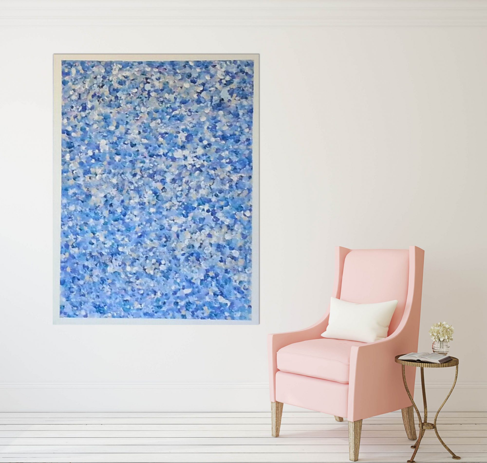 Blue Point Beauty is a lively and ambient abstract work celebrating water, sky, sea and sand! It has a white border and white edges.