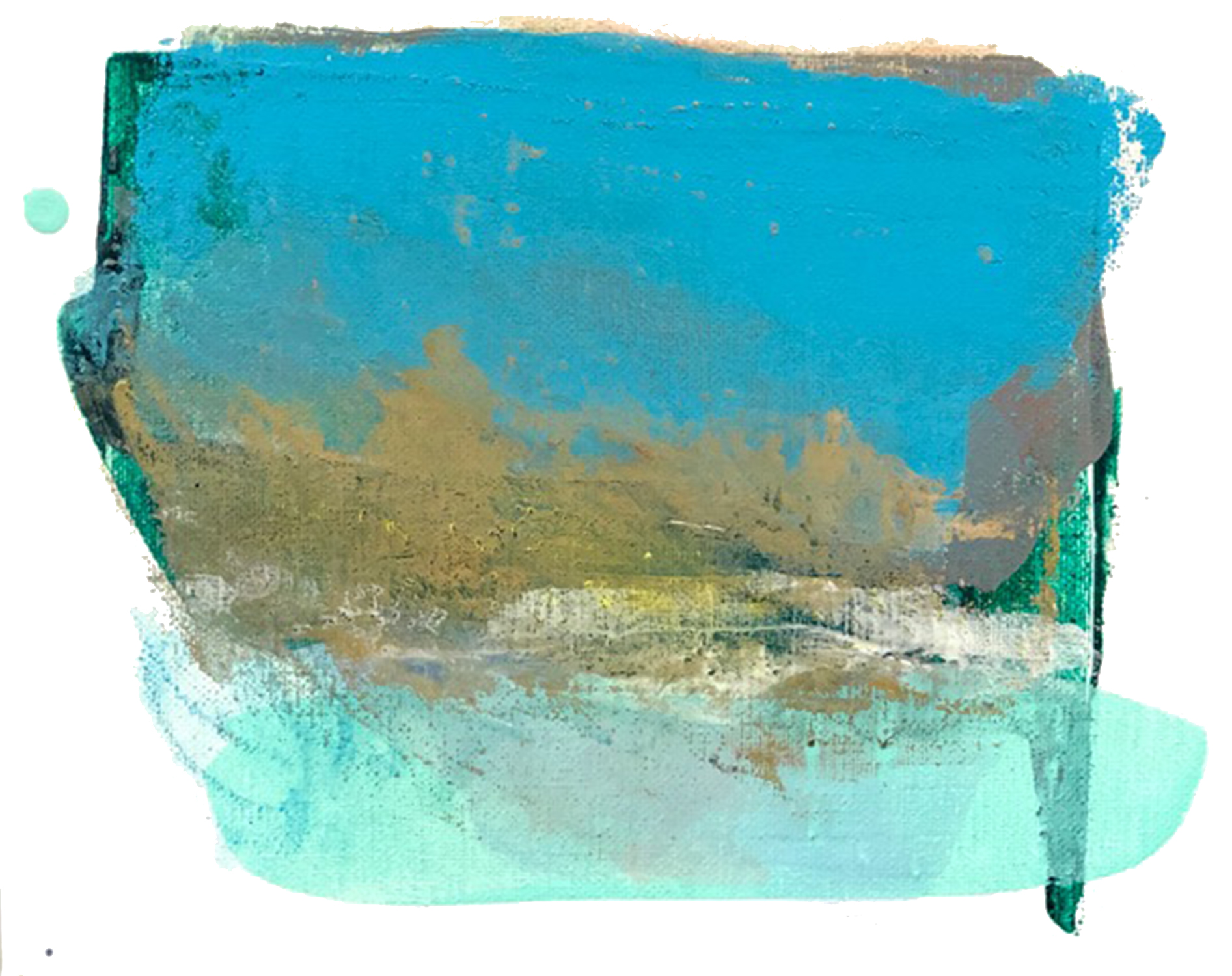 ‘Blue Skies ahead’y Cheryl Harrison is a beautiful textured abstract painting study in soft and calming tones. The palette is made up of blue, green and earth colours with a punch of gold.