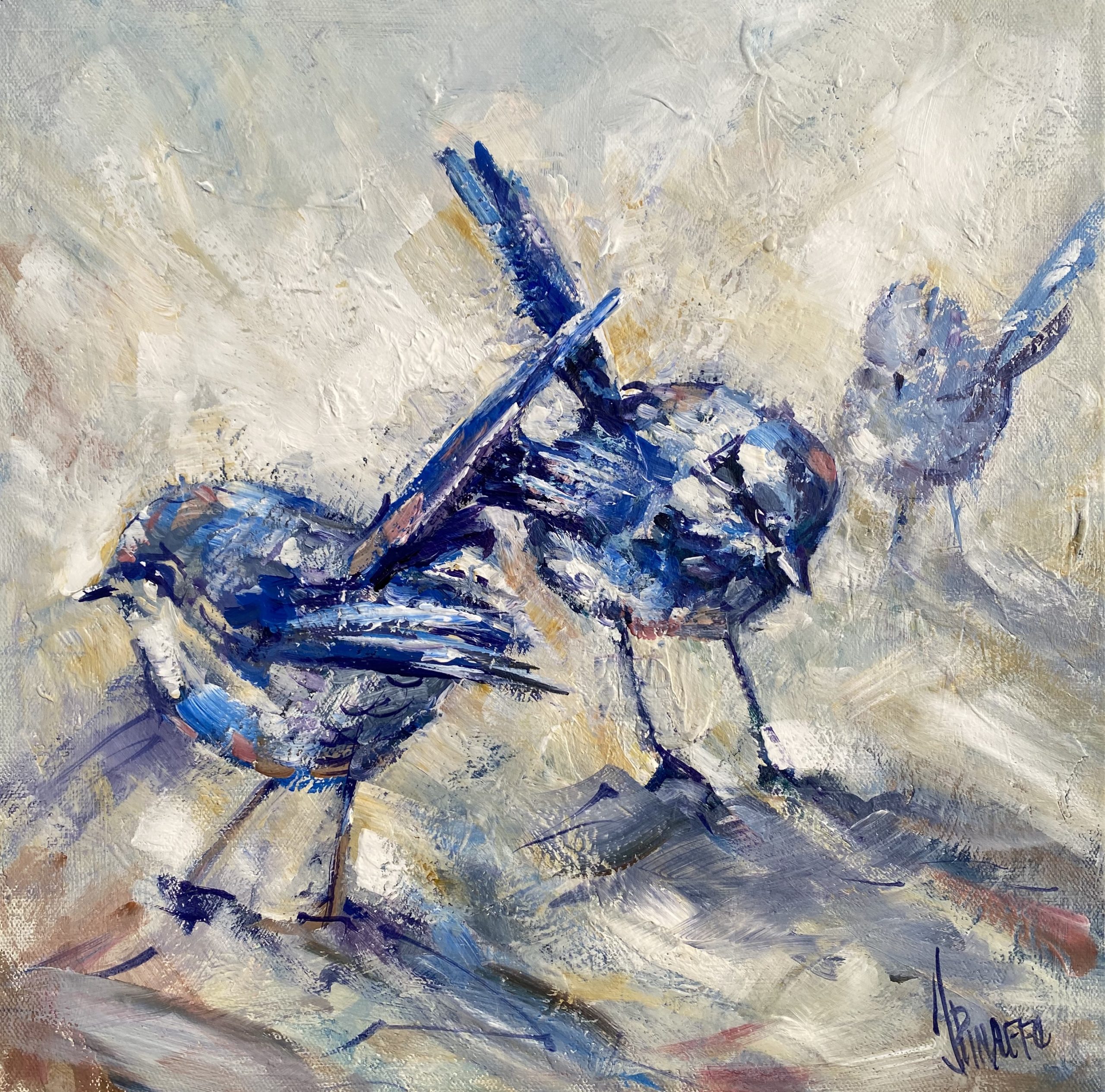 Blue wrens are so tiny and beautiful and this is why I wanted to captured them on canvas.