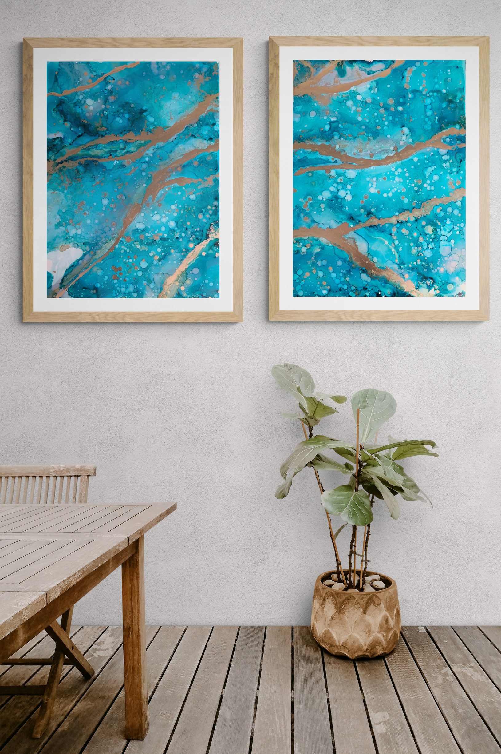 Original diptych 65 cm x 91 cm x 2 Alcohol ink on yupo paper sealed with high grade varnish and UV spray.