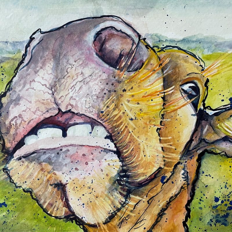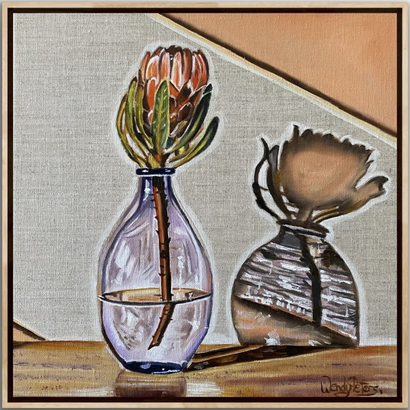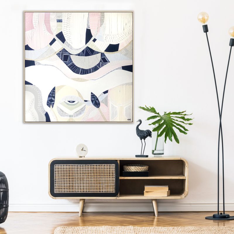 The work is a mixed medium painting and comes on a quality canvas and is painted black around the edges and is ready to hang as is.