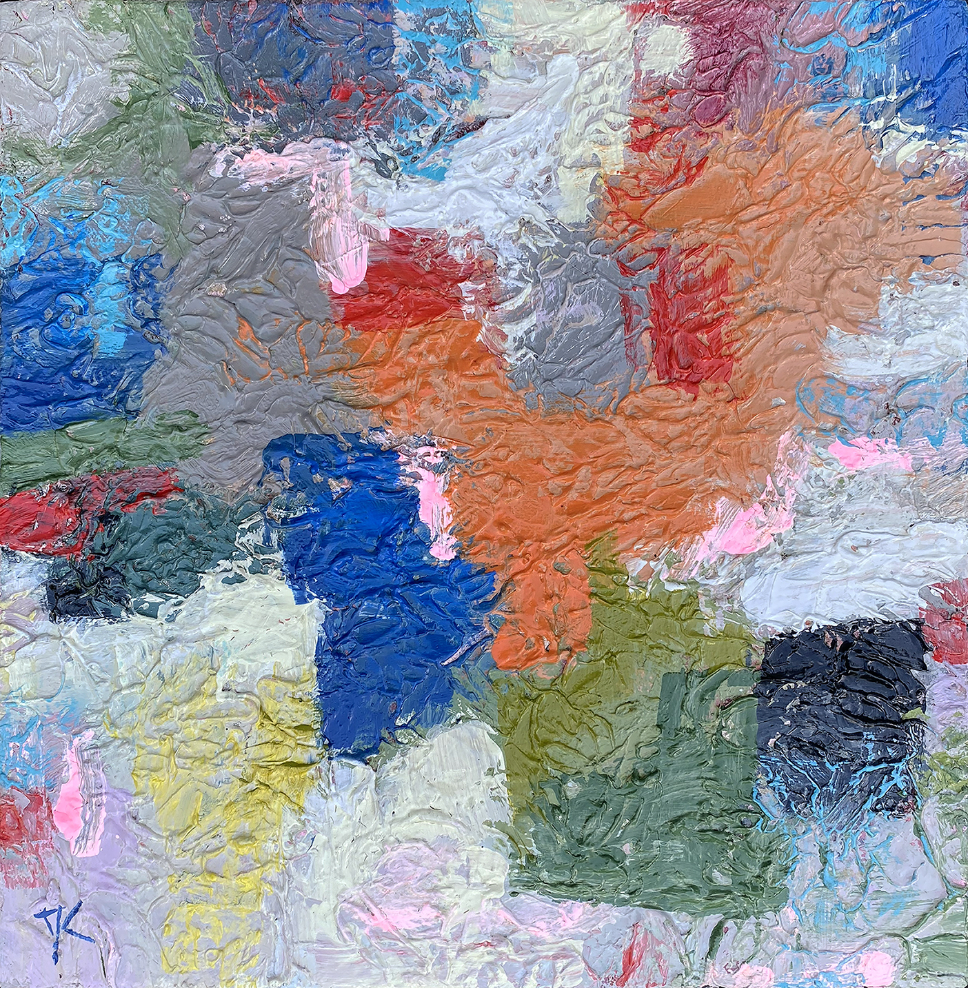 Blurred Vision by David Clare: A small abstract painting created by colour, shape and texture.