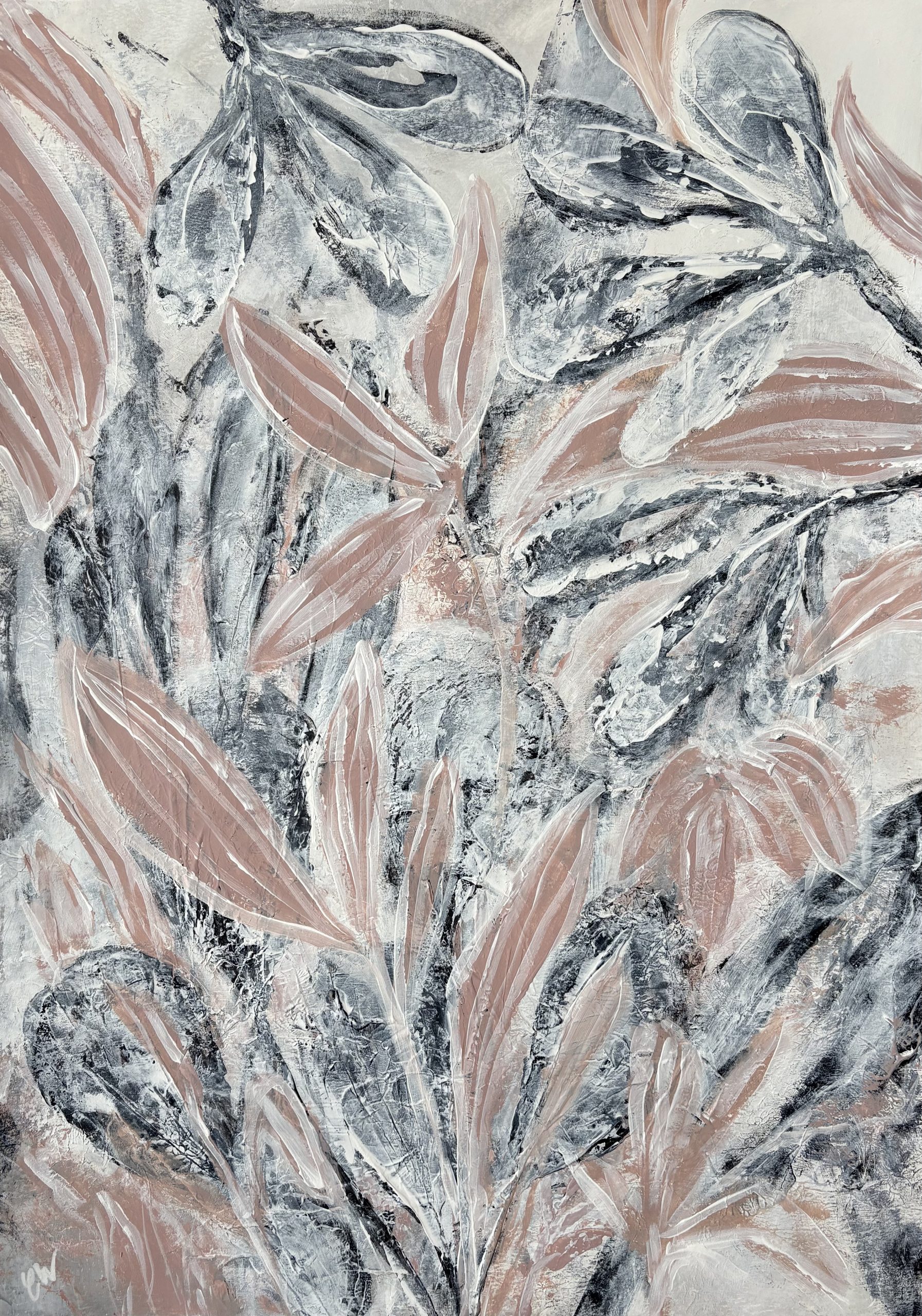 A beautifully textured abstract botanical painting. 59.4 x 42 cm (A2 size). Acrylic on paper.