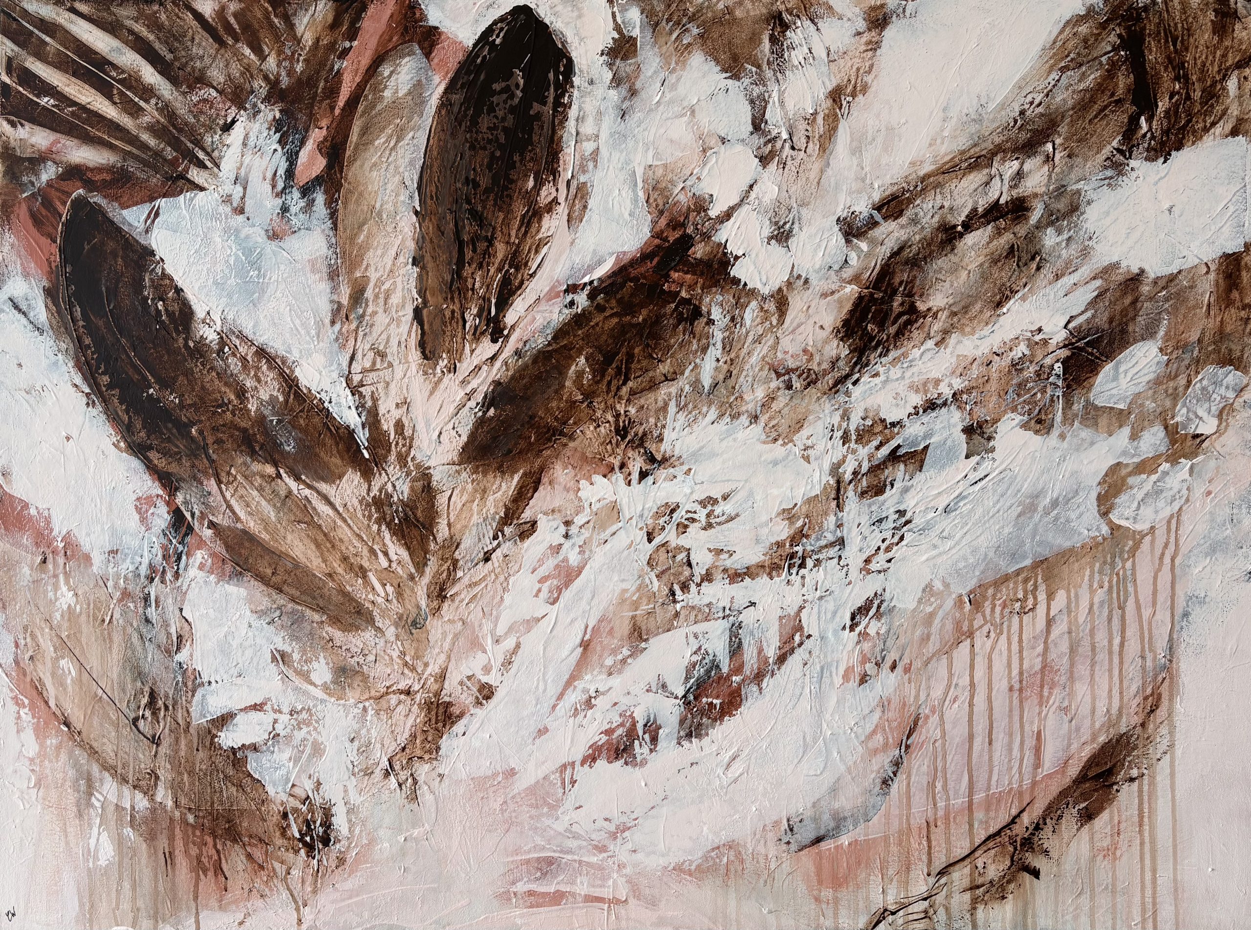 Blush Haven by Carrie Welsh is a beautifully textured abstract botanical painting. Acrylic on canvas. Ready to hang. Â Frame not included. 121.9 x 91.4 cm.
