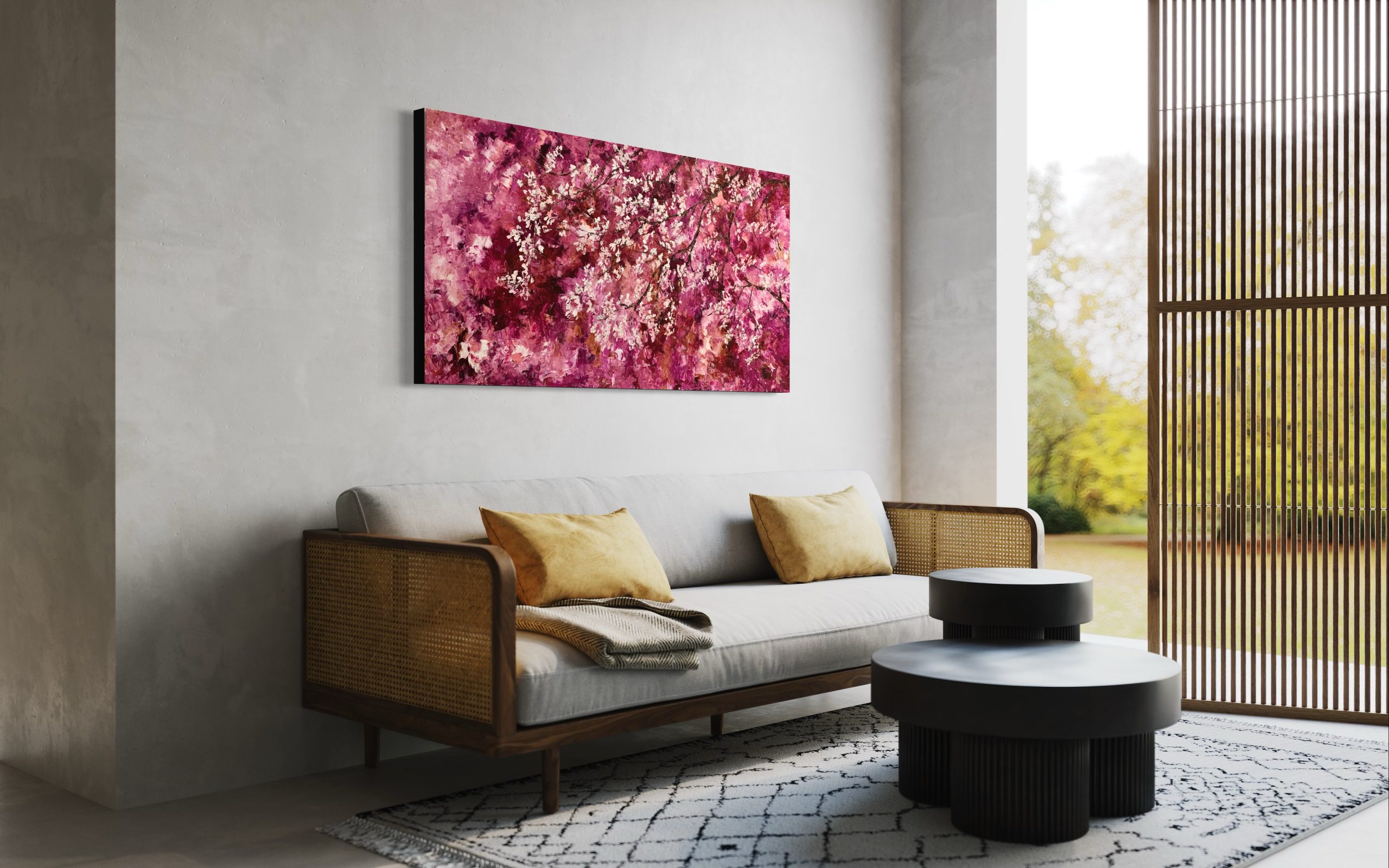 This abstract floral artwork is heavily textured, gloss varnished with sides painted black.