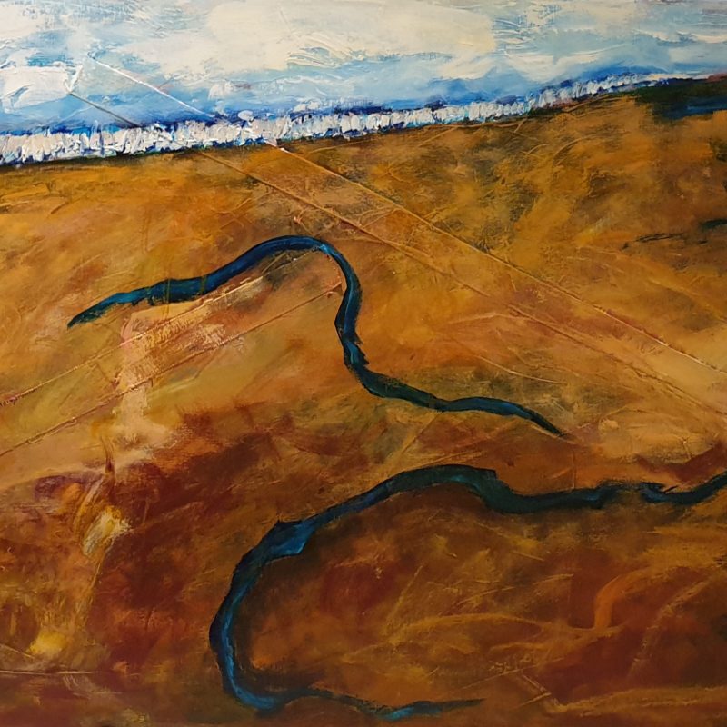 Heavily textured acrylic on stretched canvas. Sides painted and ready to hang.
