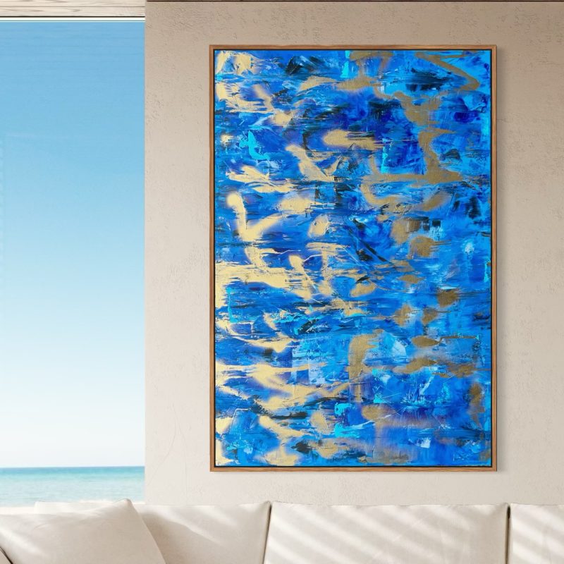 The Artwork comes Framed in Black and ready to hang, and it is mounted under a clear acrylic sheet.