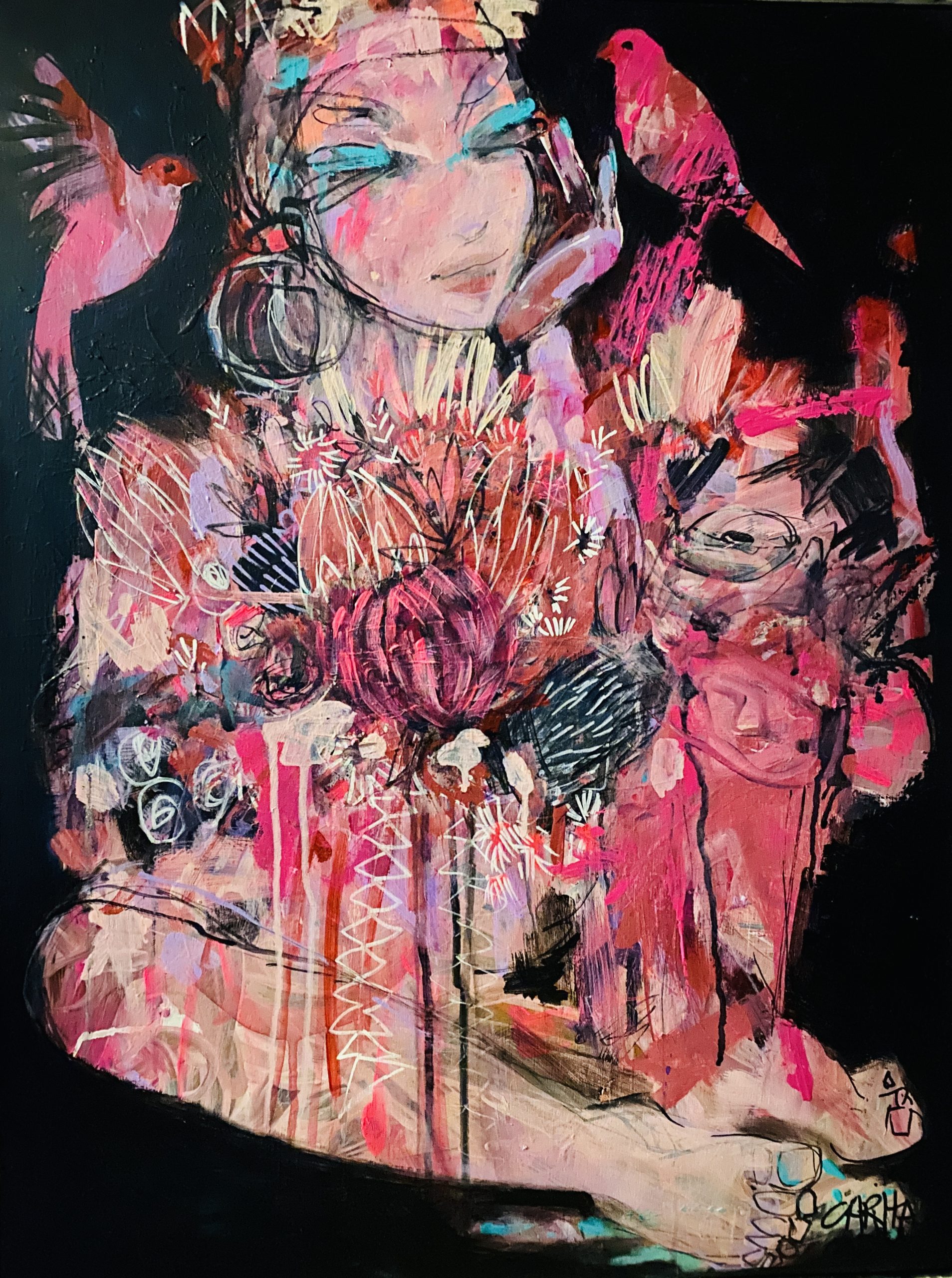 Carita’s highly original artwork attracts many collectors nationally and internationally who are drawn to her unique use of edible colour palettes, intuitive mark making and signature illustrative twist.