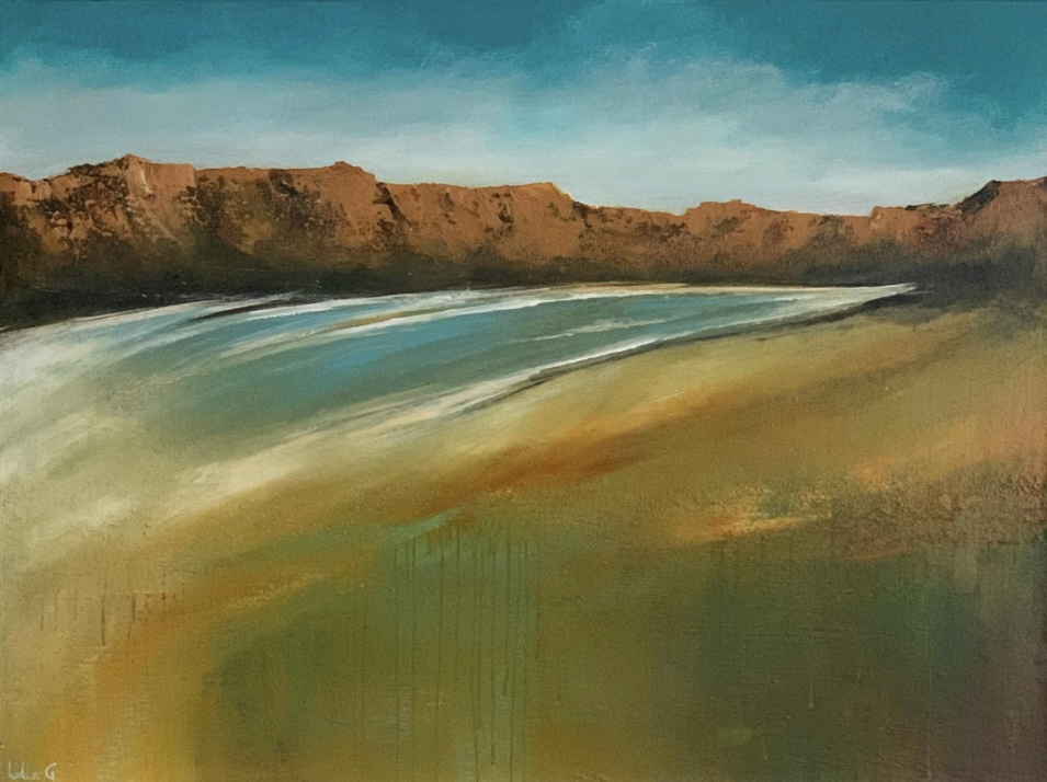 Inspired by the incredible diversity of the Australian landscape from its rugged coastlines, snow-capped mountains and the idiosyncratic landscape of the sandy desert with its sun baked monoliths and rainforests. The edges of the painted are done in Lamp Black and comes with professional wire hanger and a Certificate of Authenticity.