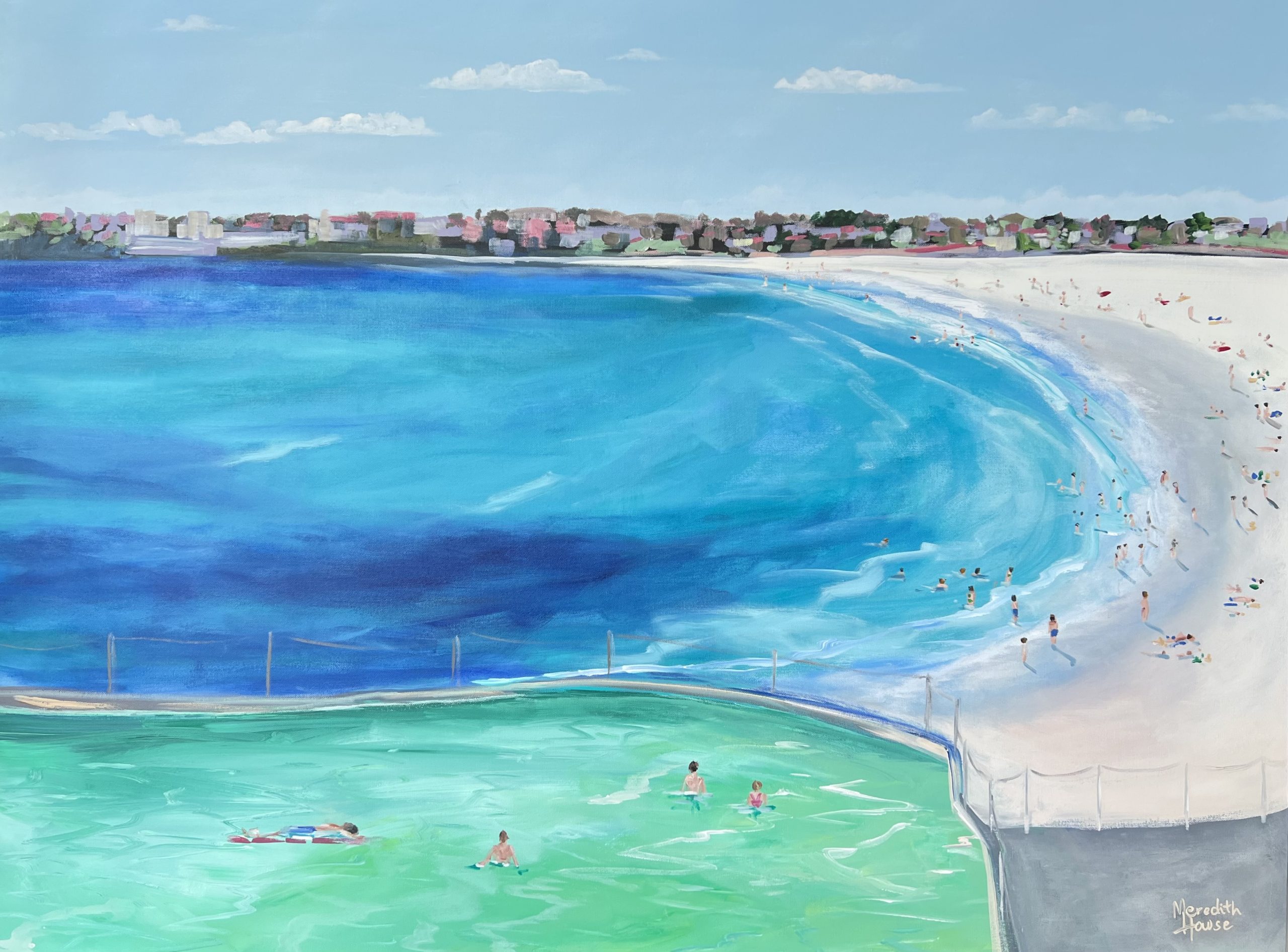 Bondi Chill by Meredith Howse, beautifully captures the northern end of Bondi Beach. Offering a view of the ocean pool, rolling waves and people.