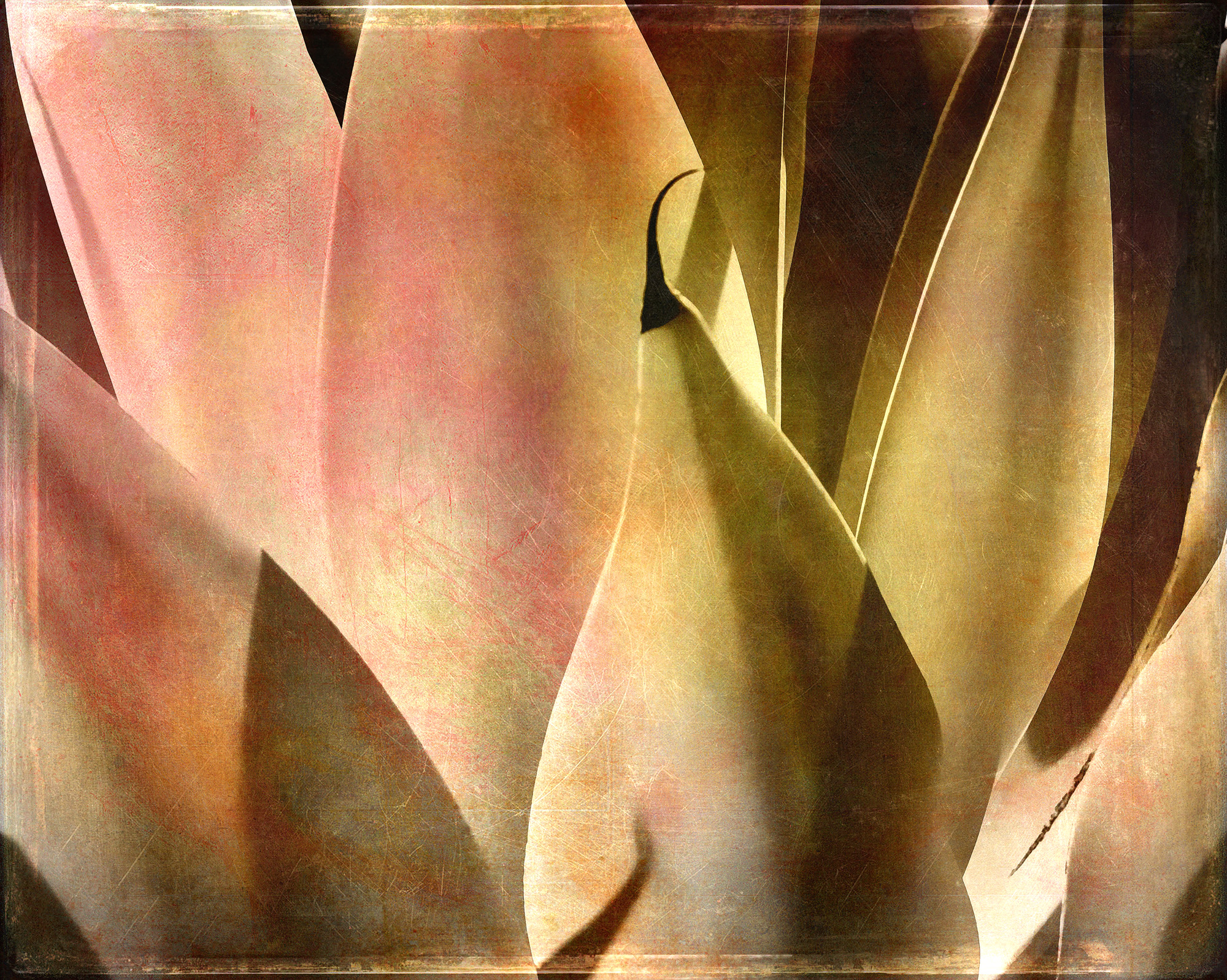 Semi-abstract study of light-play highlighting line and form of Agave leaves, blended to add to its visual appeal.