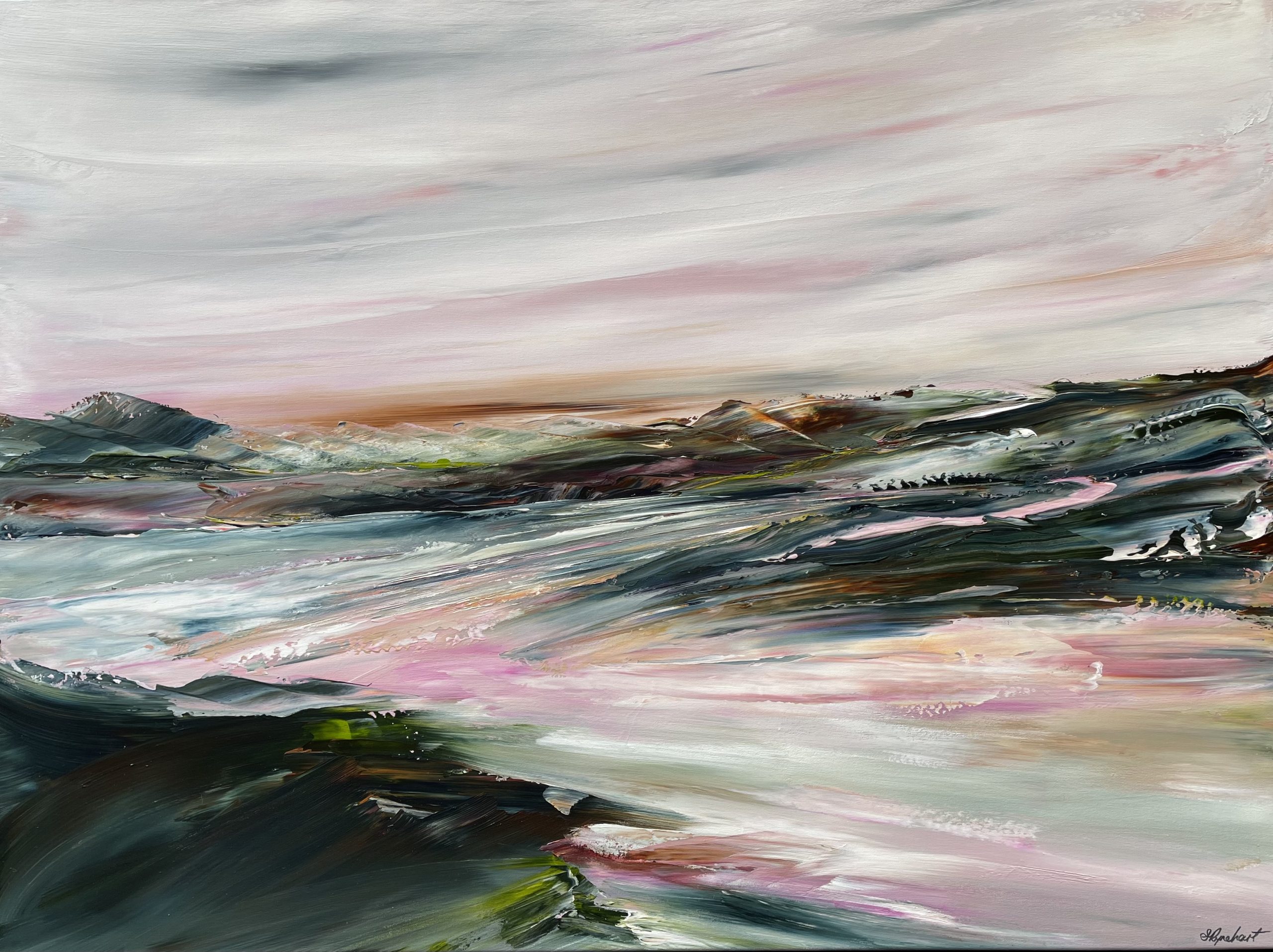 Boundless def: “without boundaries or limits, unlimited, immense…” Like the endless sky. The vast clouds. The broad lands. The infinite oceans. And boundless hope. I find hope in looking to the land sea and sky…especially the coastline that encompasses all 3 in spectacular display each morning and evening as the sun rises and sets. It’s a vast reminder of the enormity and wonder of this beautiful world that’s often taken for granted. The coast inspires healing, reflection, restoration, renewal…and boundless hope. This palette knife artwork is reminiscent of all these things.
