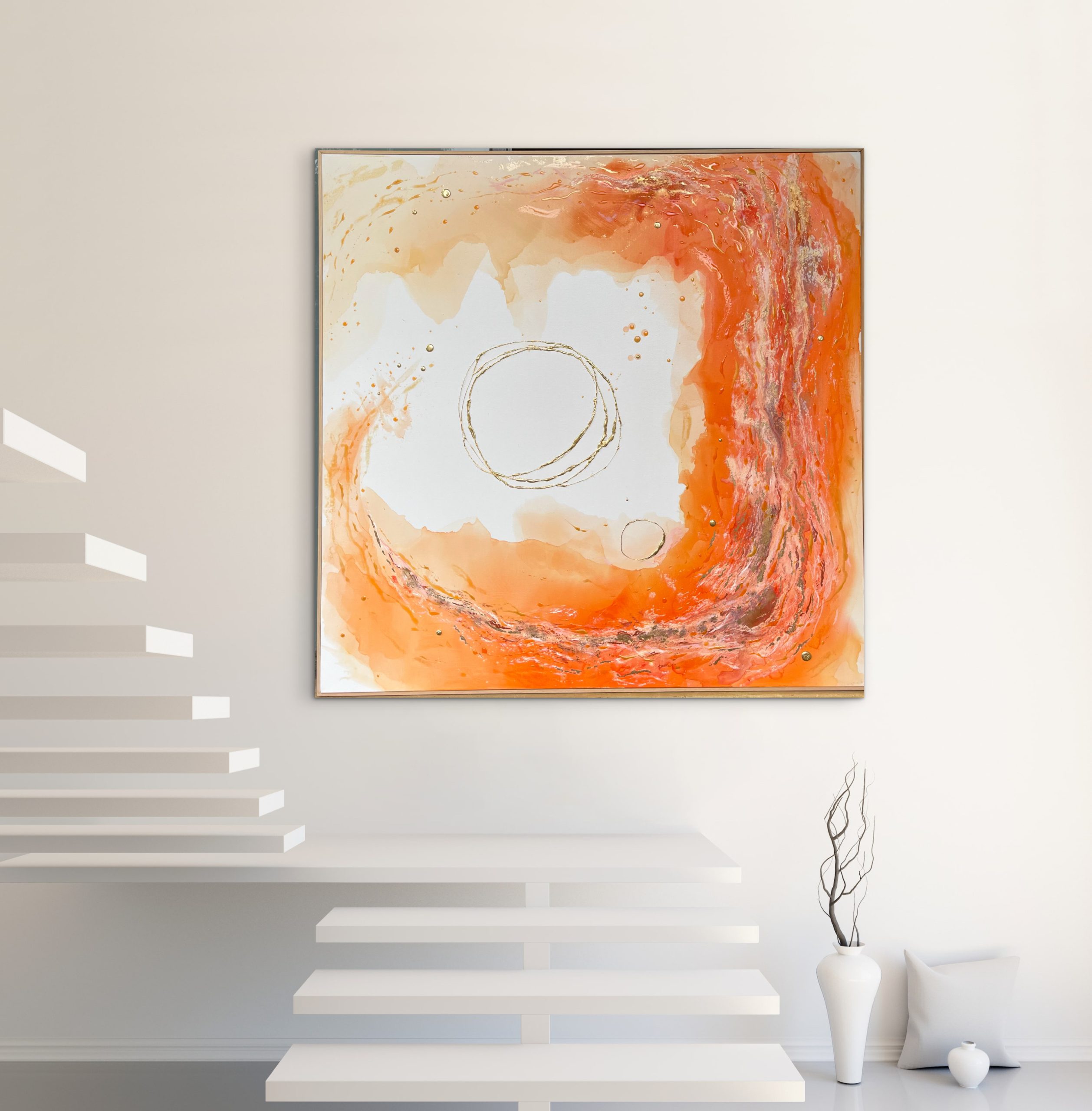 Bountiful, by definition, means to give or provide in abundance—and this vibrant piece lives up to its name. Awash in joyful orange hues and luminous gold accents, it radiates warmth, vitality, and creative flow.