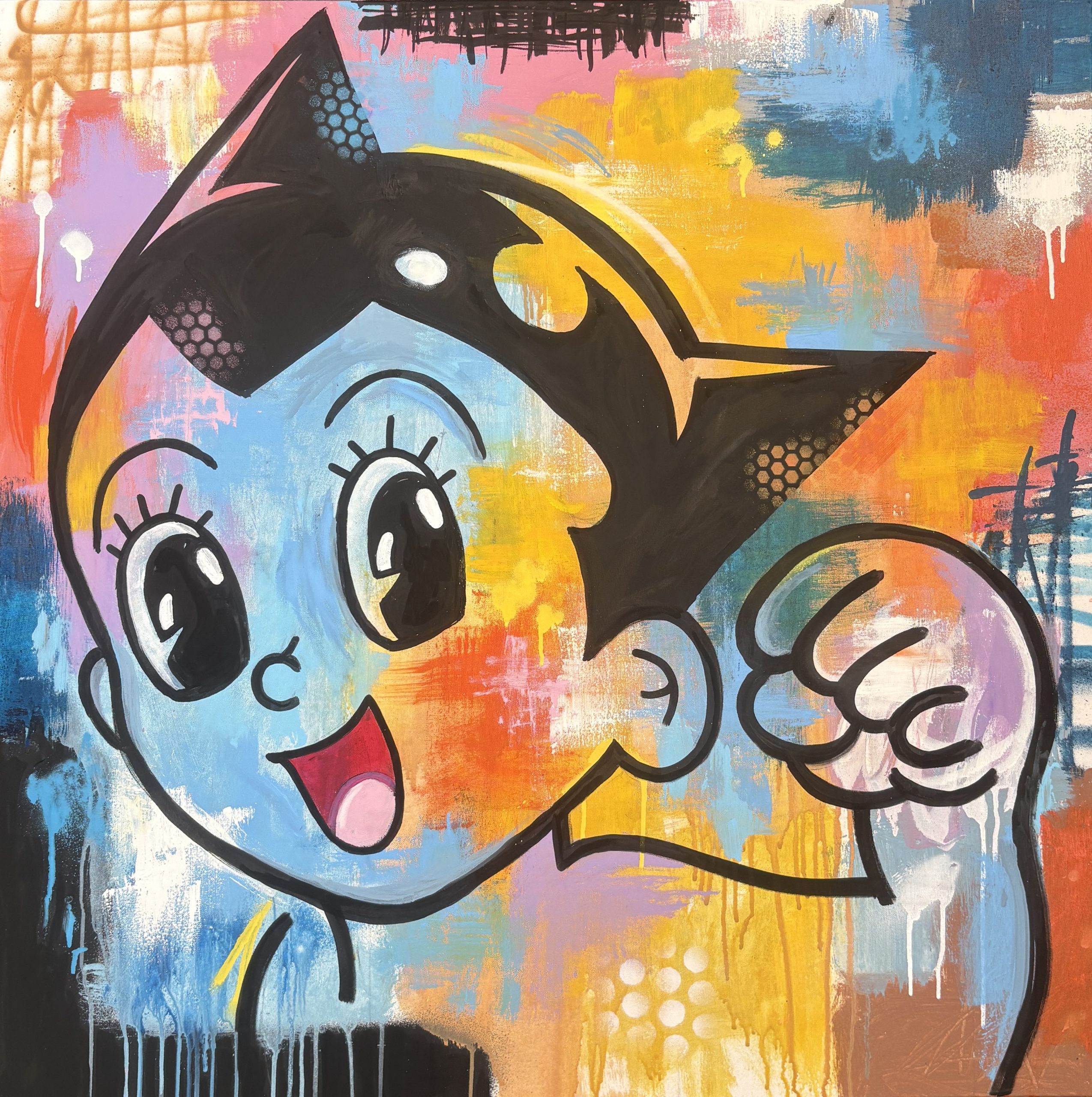This original Artwork is a continuation of my current series, playfully exploring animation, comic books, culture & technology..This painting features animation character Astro Boy.