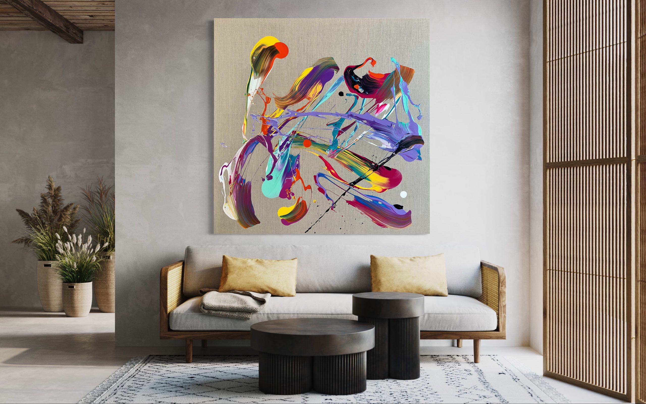 Break the Pattern by Jonathan Redmayne is a new painting that is carefully arranged by showcasing organic shapes that orchestrate a narrative of conflict and harmony, fragments of contrasting colours created through blending brushstrokes, abstract signatures and sculptural like curves.