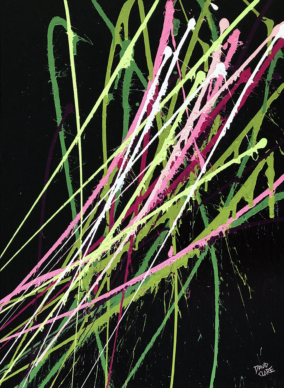 Breaking The Shacklesby David Clare – Although I am trying to discipline myself to stay focused on a theme, or series, every now and then I just have to splash some paint at a canvas. “Breaking The Shackles” is a classic case of that. I love painting with this freedom, and letting paint, and colour do its thing. As much as I love the blending qualities of Oil paint, I also love the way Acrylic paint just sits, and merges without blending, when applied in a direct manner. So, here is my latest “release”.