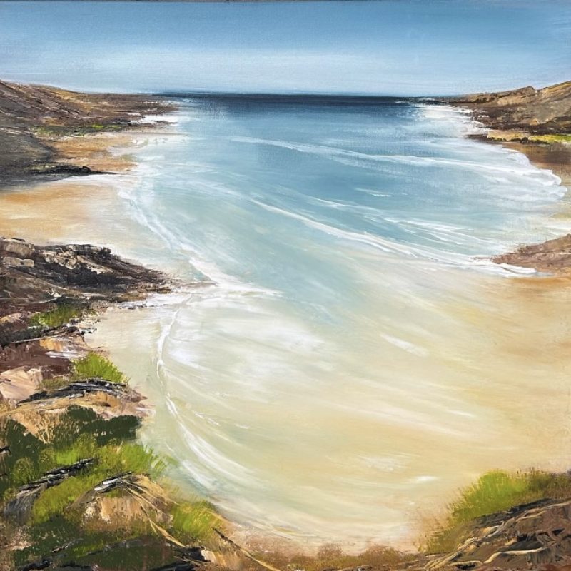 Breathtaking by George Papathomas is a very soothing and tranquil painting where sky, clouds, water and petals come together to create this beautiful landscape. Capturing the beautiful Pink pastel colours against the cool colours gives so much depth to the painting. A poetic painting where clouds covering the hills, waterfalls running . A very harmonious and tranquil composition that can be enjoyed many years to come. The painting is signed and dated 2020 at the back and comes with a certificate of Authenticity.