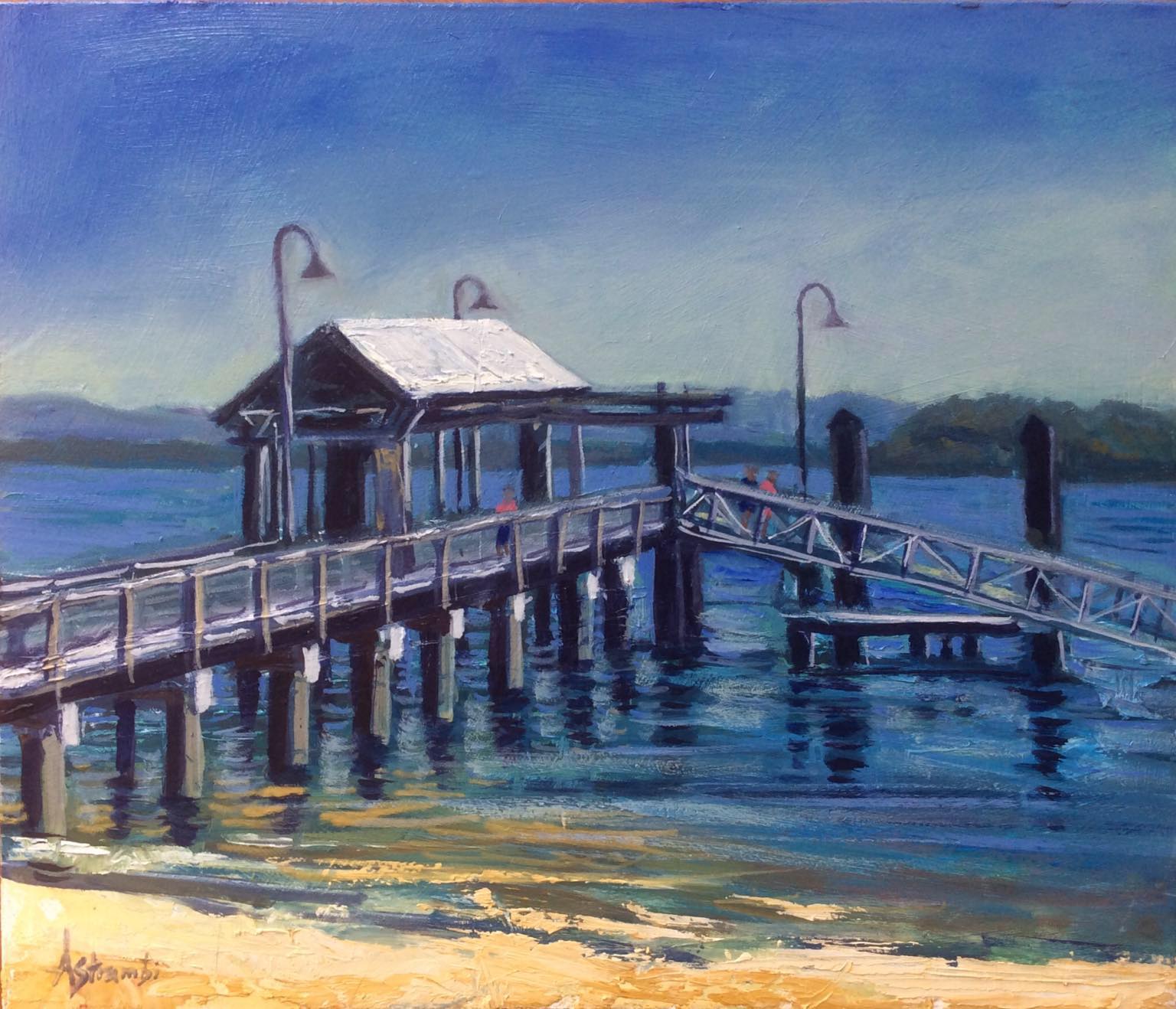 At a recent plein-air art workshop at Bribie Island, I painted this attractive jetty at Bongaree, starting it on location and later finishing it in my studio.