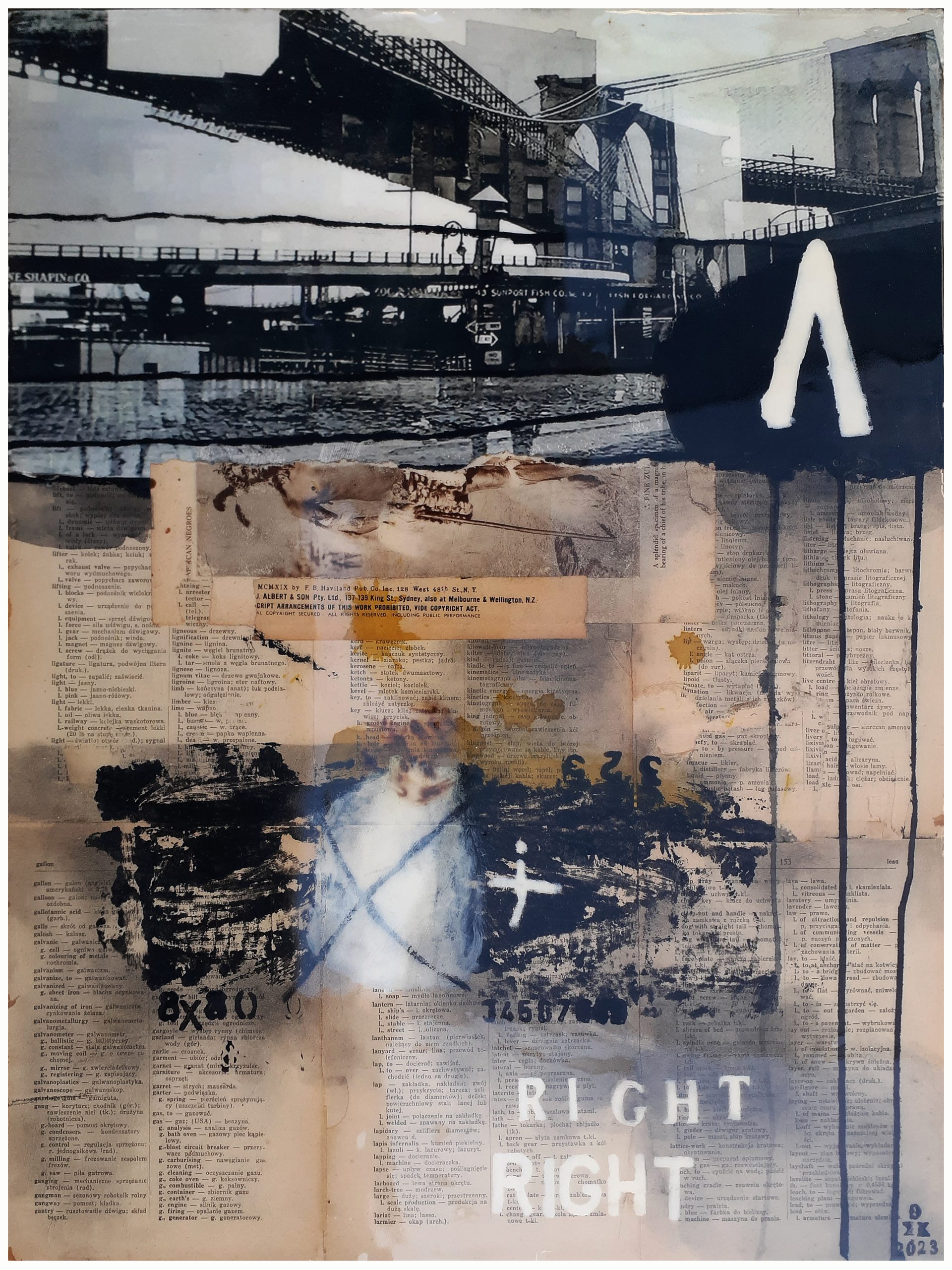 Vintage papers, inks, pencils and paints where used to create this mixed media artwork on board, that has a polyurethane gloss clear coating finish.