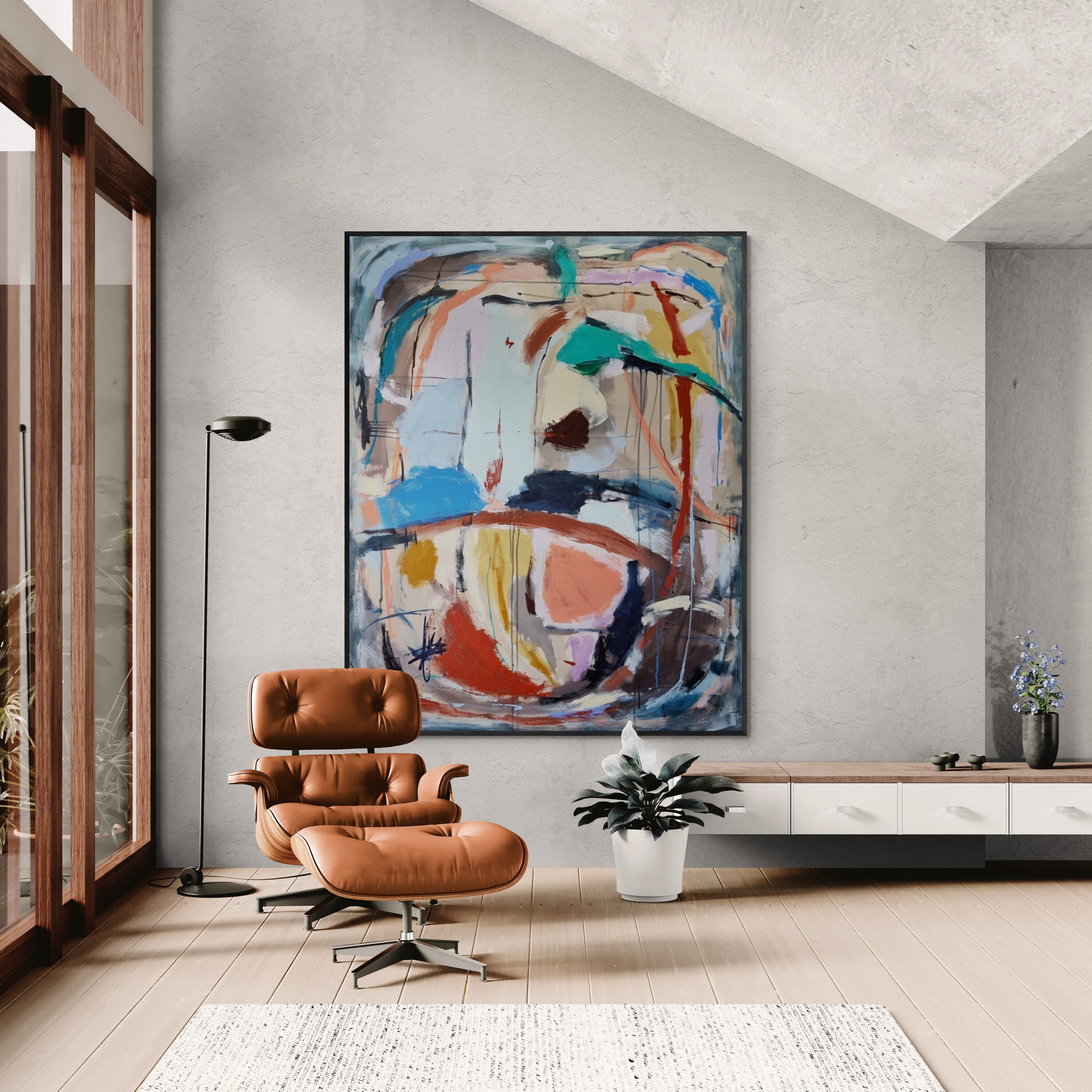 An expressive piece created with acrylic paint and oil sticks on gallery canvas. Rich in color, movement, and texture, this artwork is designed to make a bold statement in any space.