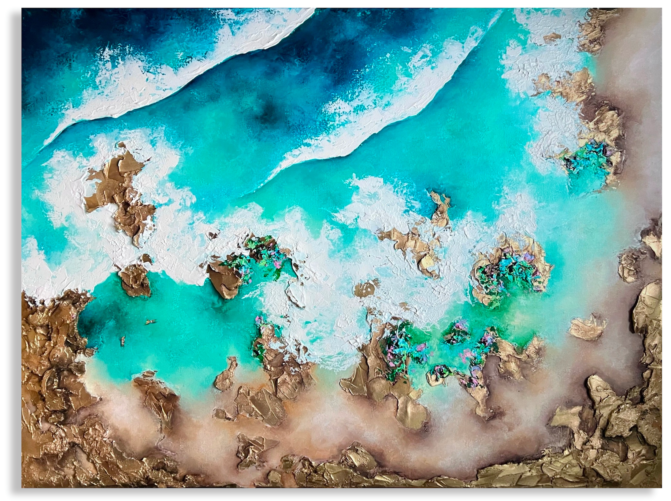 Some of my canvases are ordered with a float frame, usually the most popular is a Tasmanian oak frame. If you prefer to frame the piece once the painting is finished, I can assist you in organising a custom frame or you can choose to arrange framing yourself.