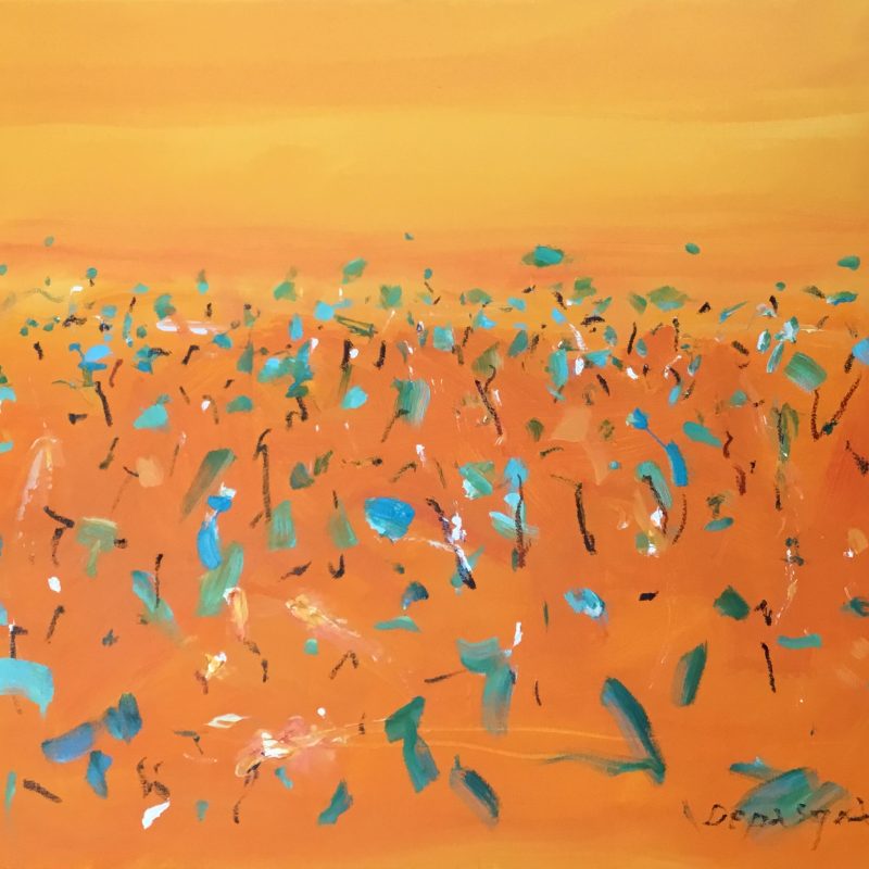 Brimming Valley by Angela Roskell – a colourful and eye-catching abstract acrylic painting stretched and ready to hang complete with certificate of authenticity.