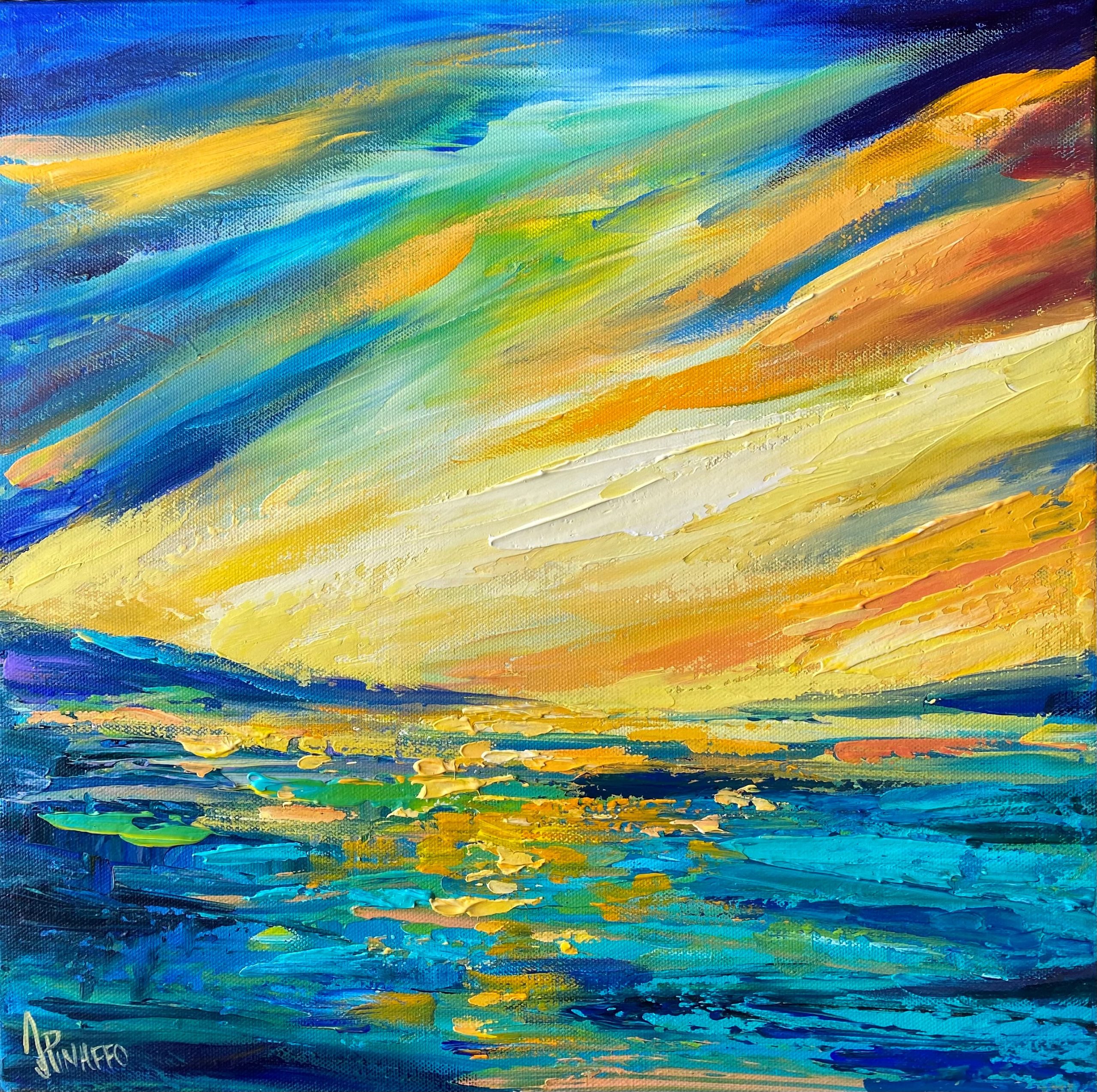 I used bright complementary colors to warm me and hopefully everyone that looks at this painting.