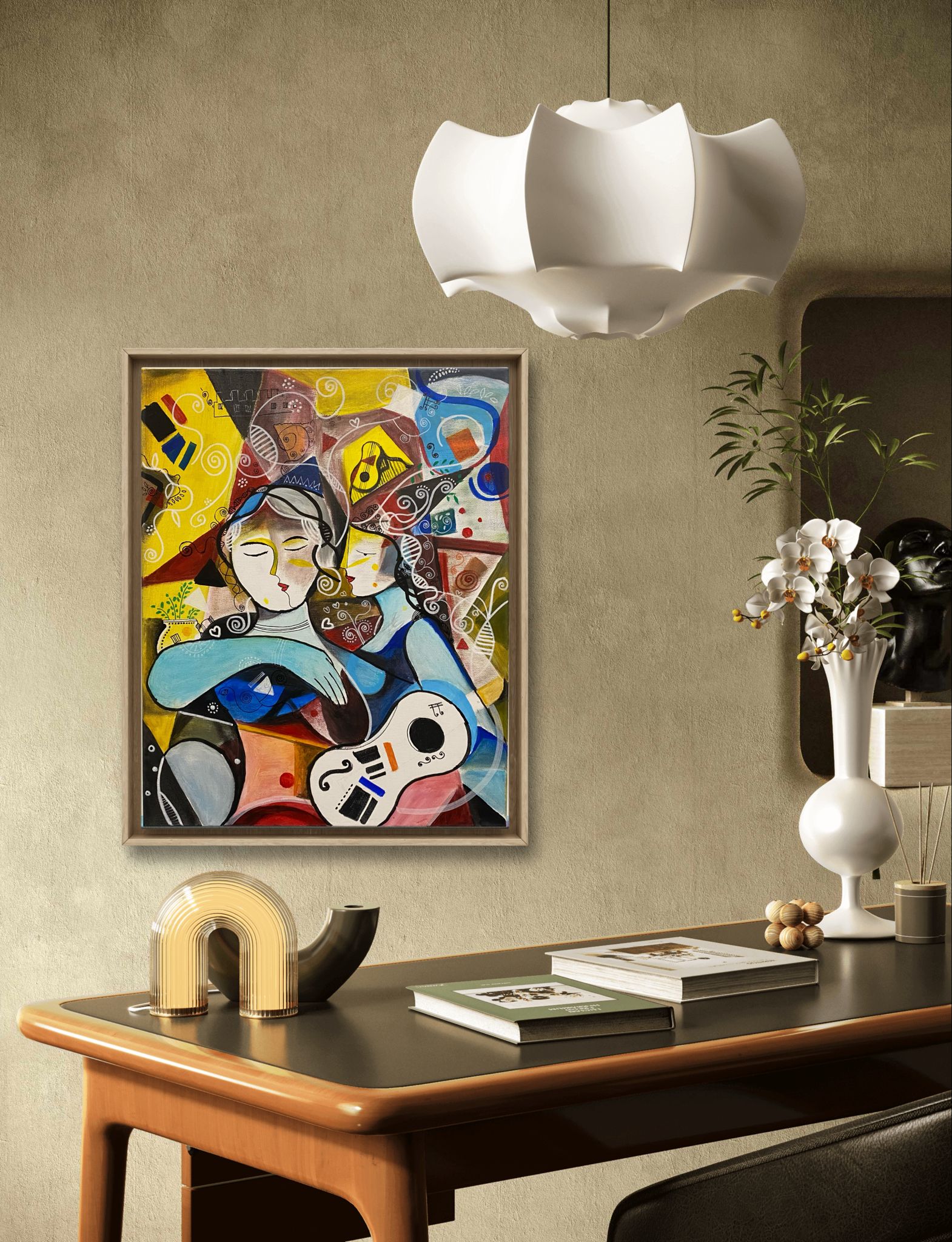 Broken Love by Mahesh Aluthge (MaASHI) – Modern contemporarty art with basic human shapes represents the abstract human expression of a broken romance and some of those other shapes represents human, nature and social.