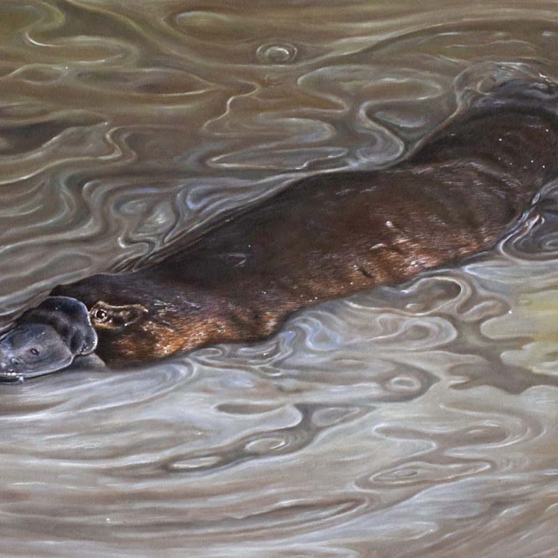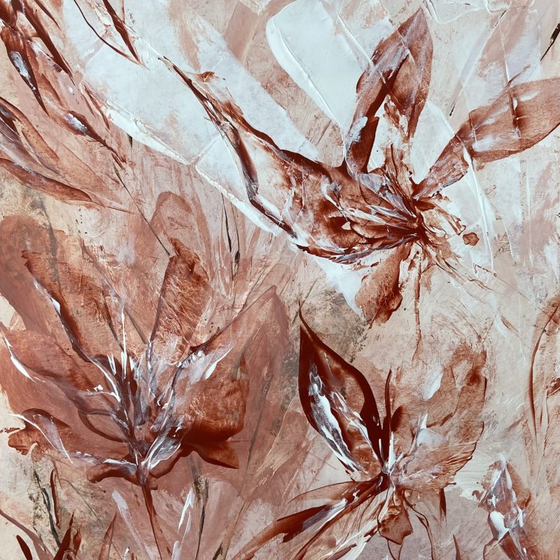Use of free flowing brushstrokes with blues, pinks and greys bring this artwork alive.