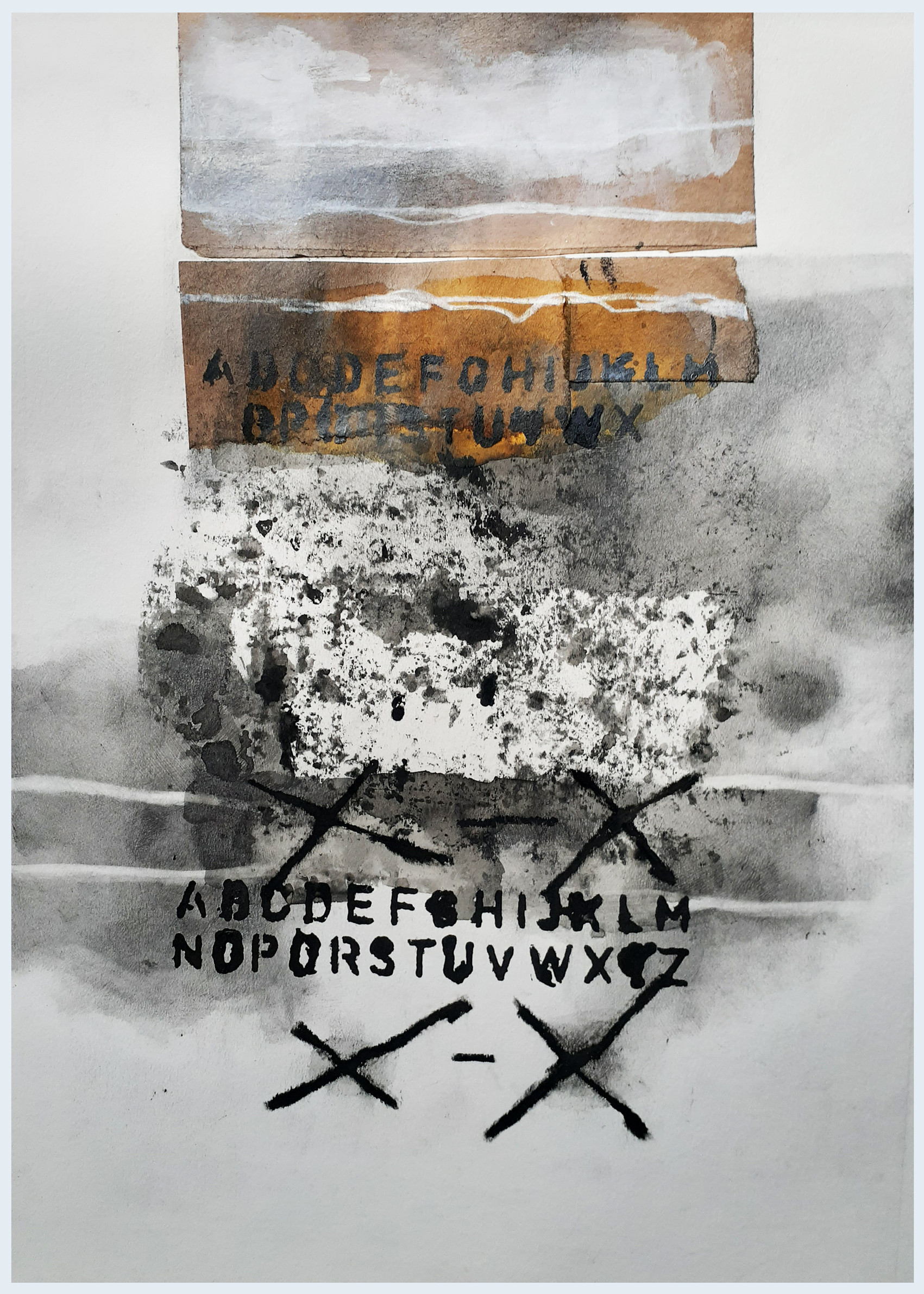 ” Brown Square ” is an original mixed media artwork by G Kustom Kuhl that includes the use of pencils [various & layered], inks, stencils, paint, paper and hand made forms that have been relief printed.