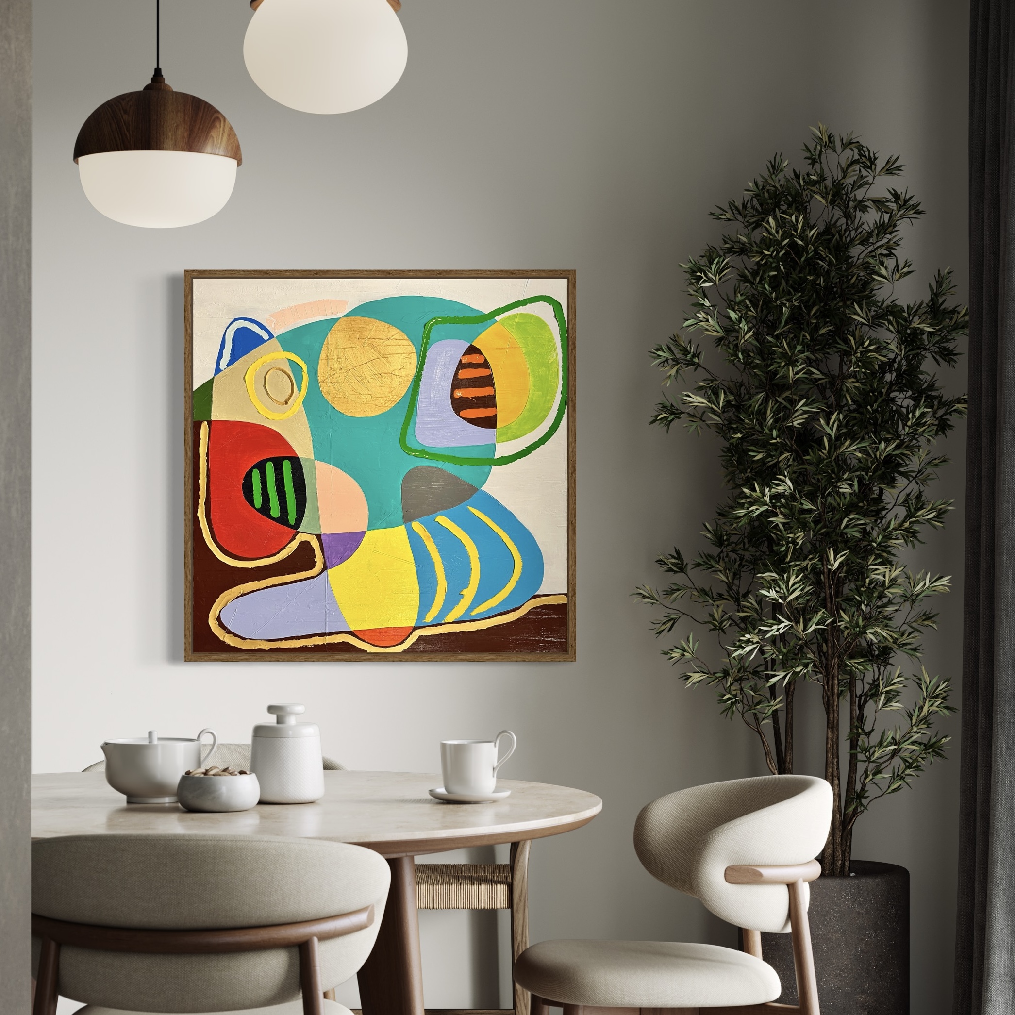 – Stretched artist quality canvas with internal wooden frame.