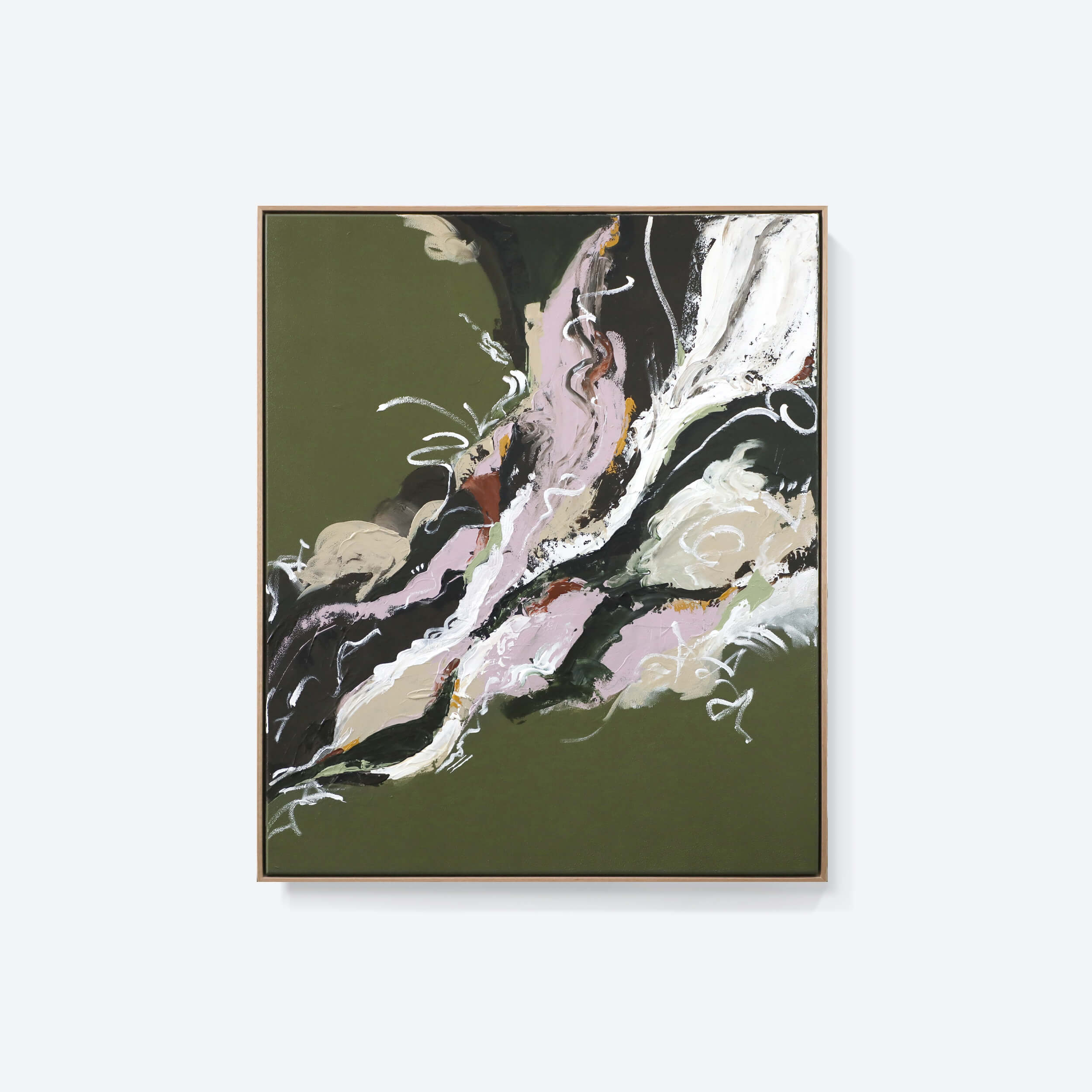 100cm x 120cm premium acrylic on 12oz cotton duck canvas with a Tasmanian Oak timber float frame. Signed on both back and front and includes a certificate of authenticity. Shop statement abstract art at Lee J Morgan.
