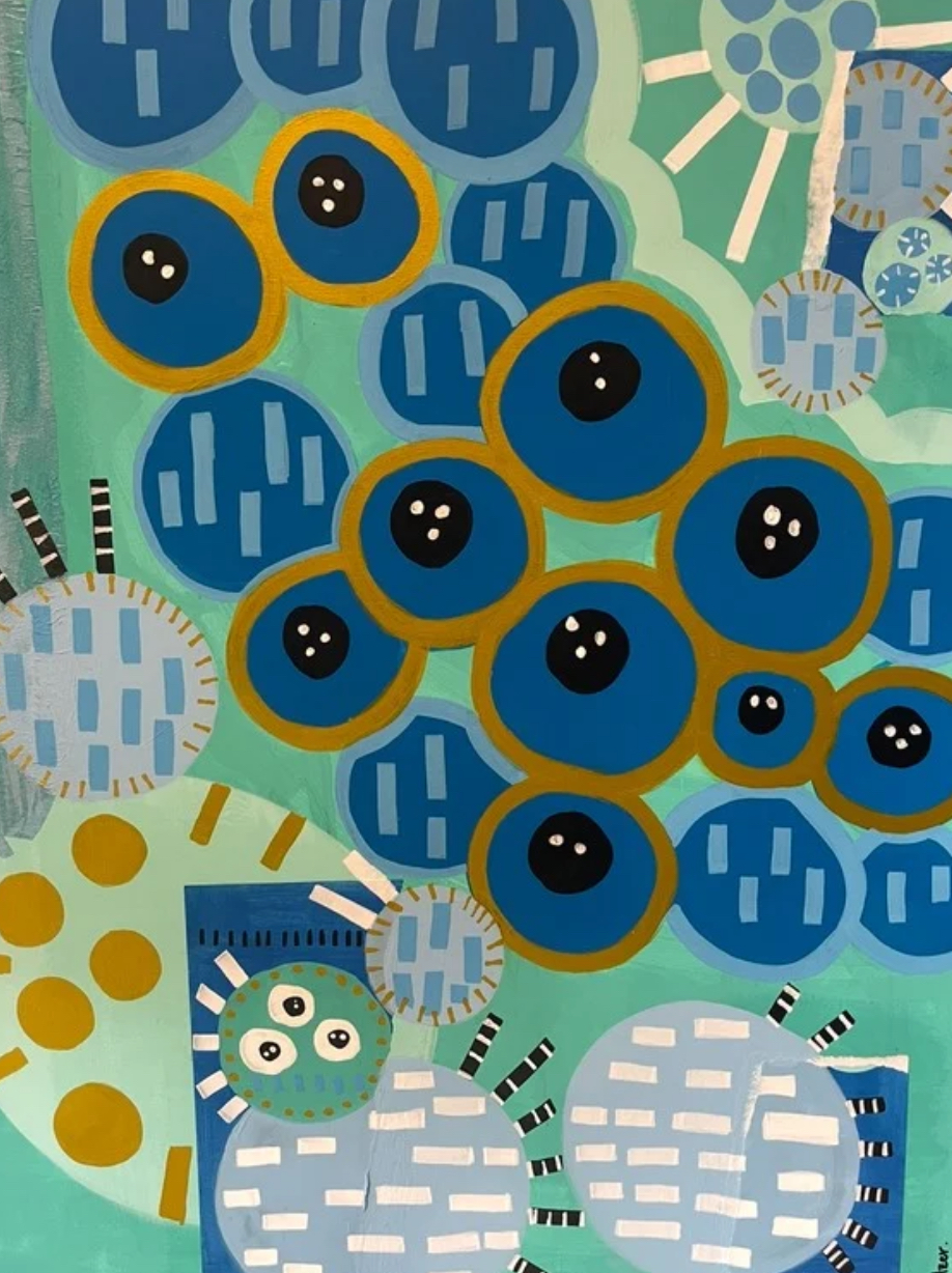 Bubble 086 by Karin Melzer -This is a unique piece whose overall light turquoise tones with blues represent the wonderful Australian ocean.