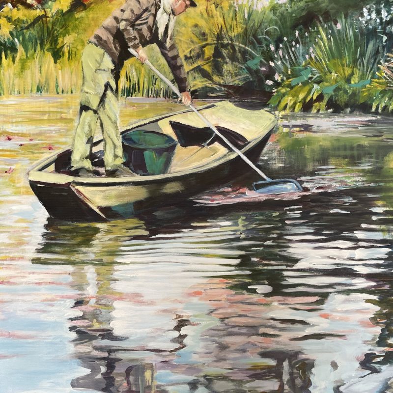 This piece started with many intuitive layers, of acrylic ink & paint, to create a deep watery abstract scene. Using different methods to manoeuvre and coax my mediums to move and flow in different directions. At times I delved in with my fingers….felt like I was in kindergarten again.