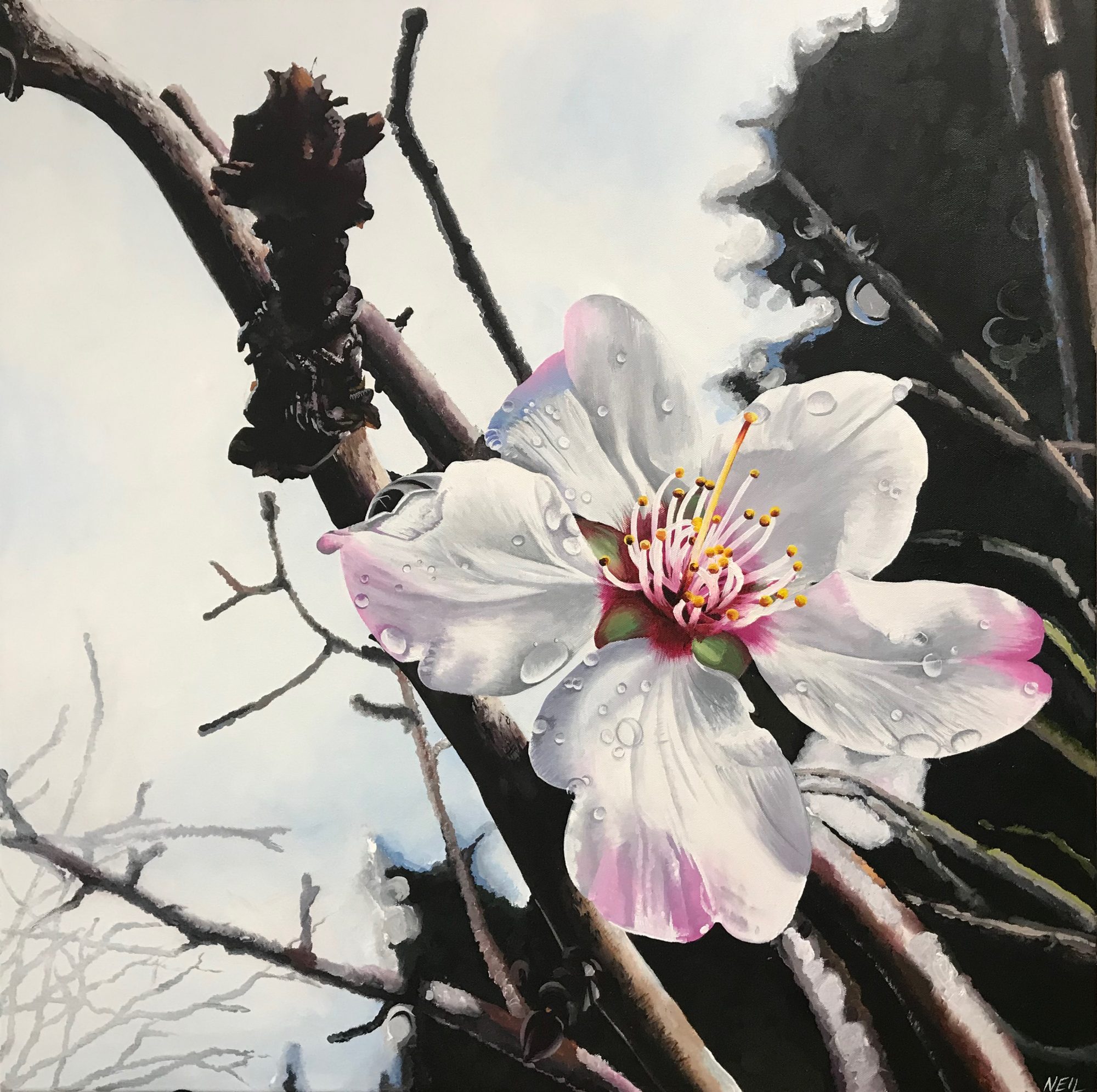 Acrylic Paint on stretched canvas, ready to hang.