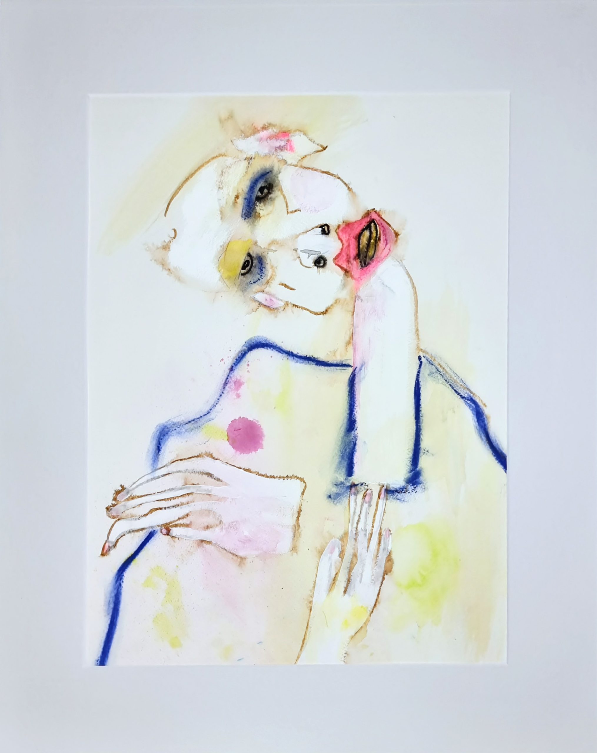 Watercolour and ink on paper with border