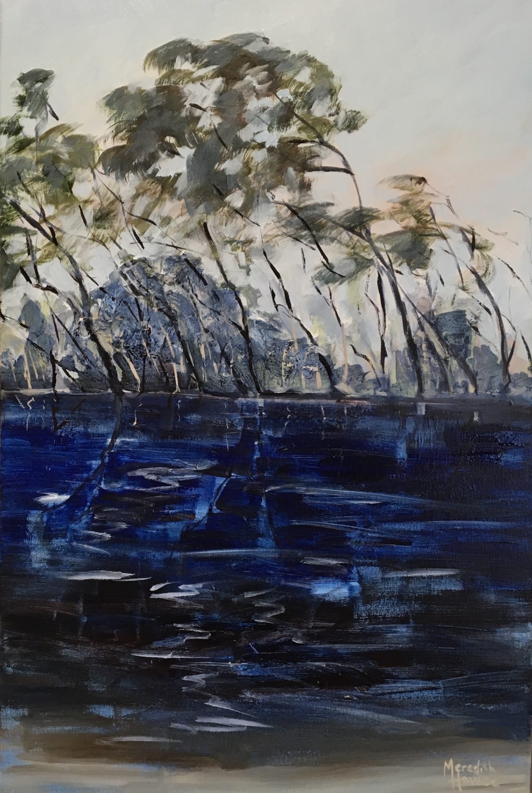 Landscape artwork of a Tea Tree lake by award winning Australian artist Meredith Howse.
