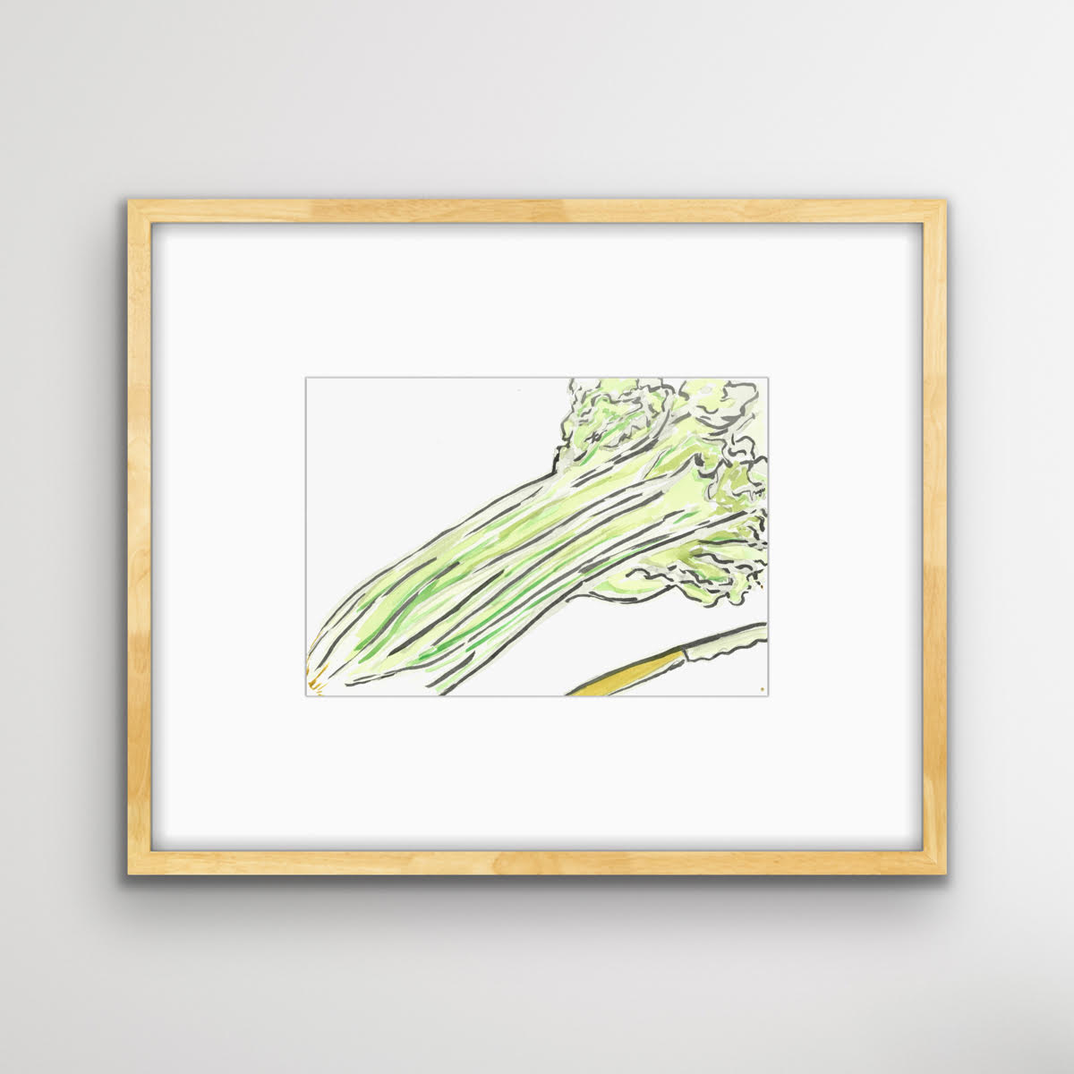 This piece was inspired by the fruit and vegetable markets. One of my favourite things to do on the weekend is to peruse a beautiful foodie market and take my time selecting fresh, crisp fruits and vegetables. I love the way that produce straight from the farm has its own distinct smell especially celery with its long slender shape and a crunchy texture. My hope is that this painting brings colour, joy and a sense of calm to your space.