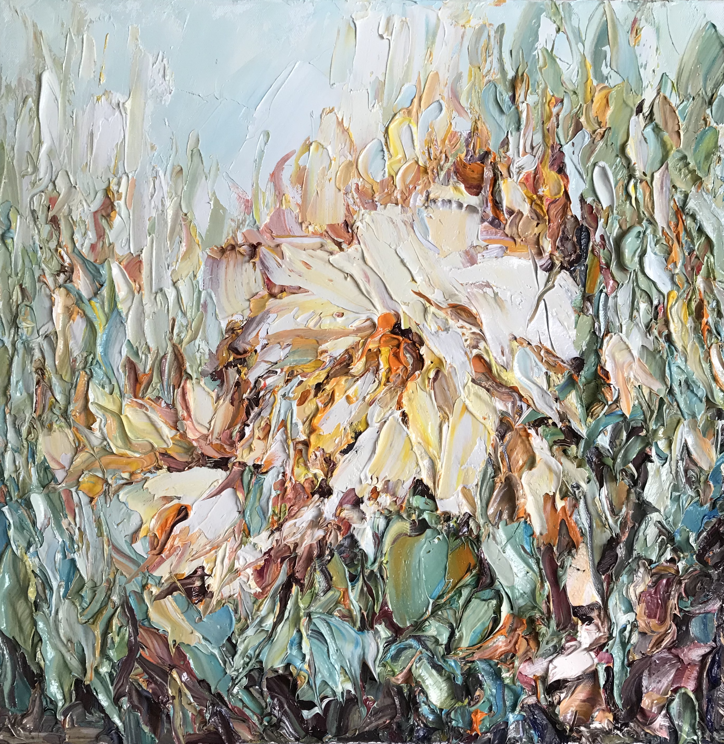 There is a lot of texture in this painting. It’s done with a palette knife only.
