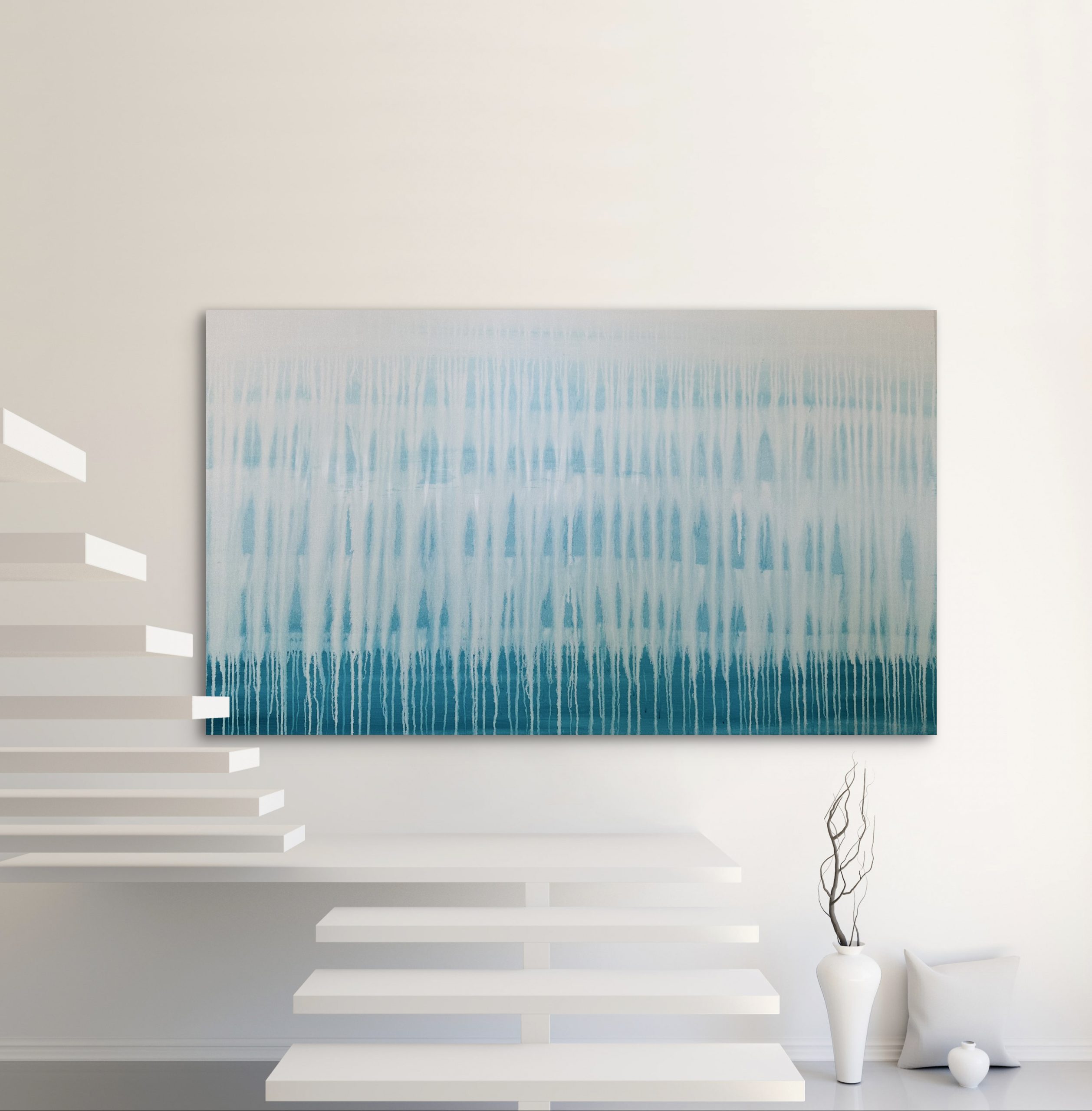 This painting is a part of my ‘Shbori’ collection. A striking abstract in shades of turquoise ombré