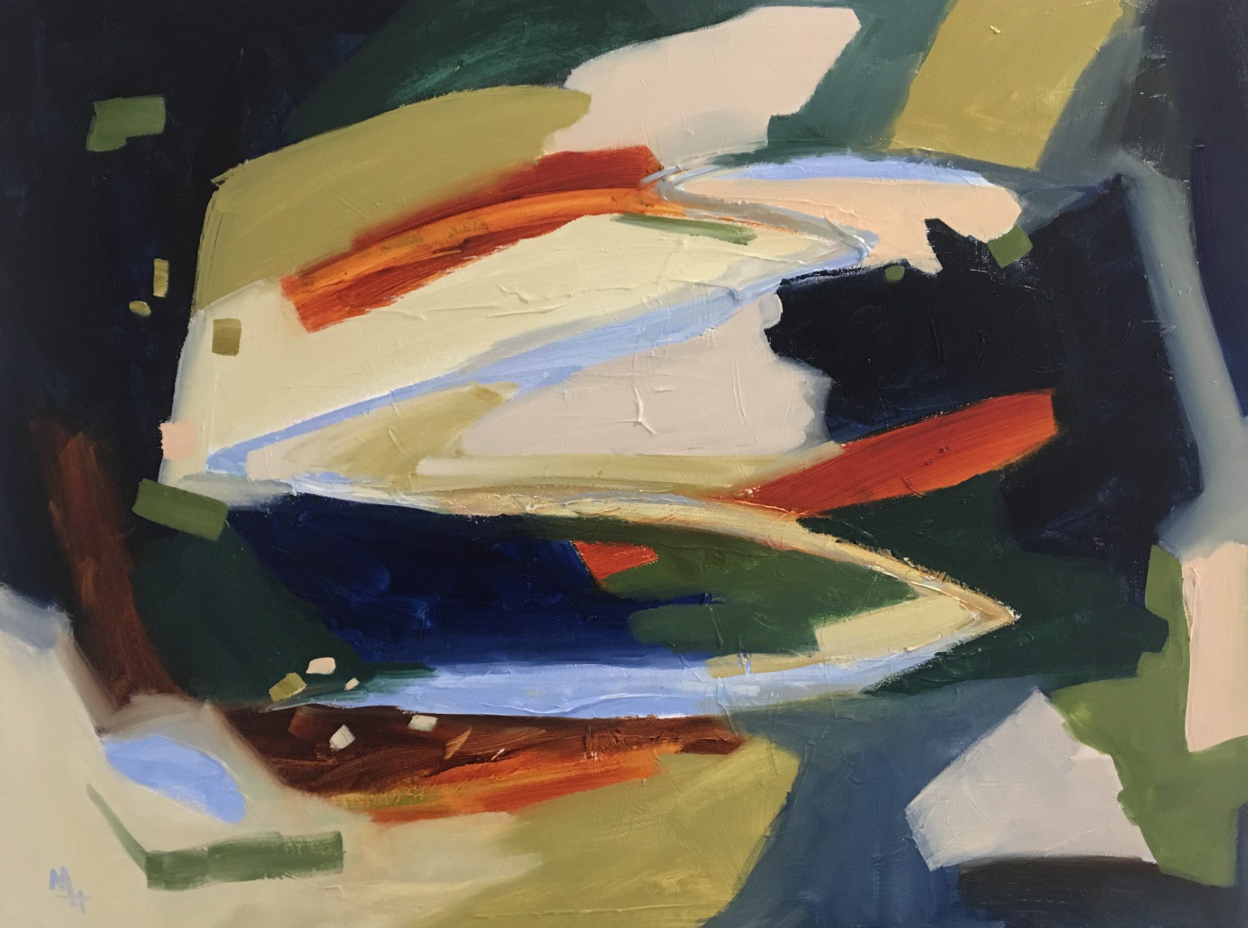 Cactus artwork by Meredith Howse. Forms part of new and exciting series of artworks by Meredith Howse, part of a sophisticated collection of abstract landscapes using rich deep greens, earthy browns and warm ochre’s, with a splash of blue to symbolise our rivers, dams and blue sky’s. A birds eye view point on a textured, well primed canvas. Connections are made between colours and lines.