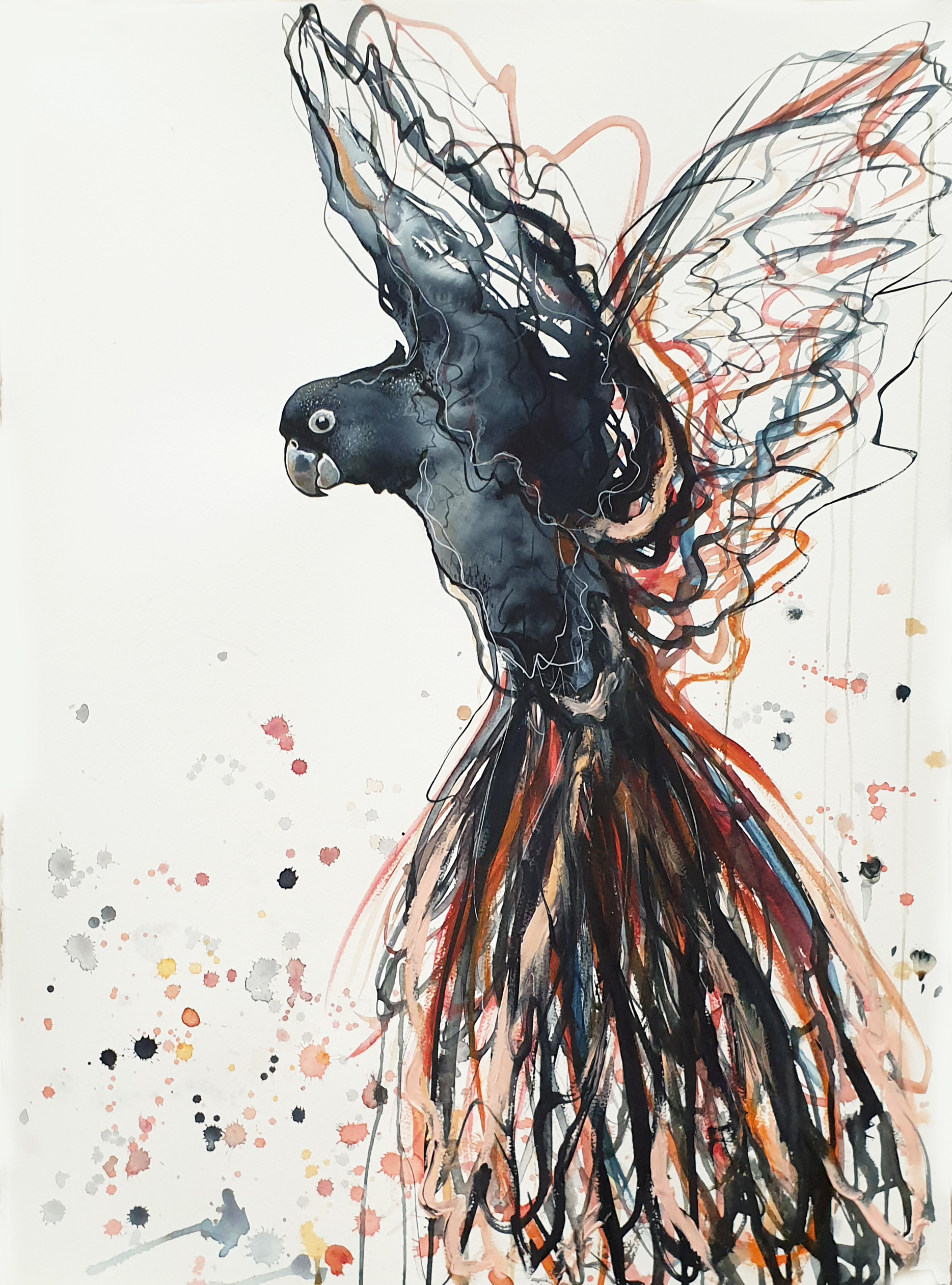 • Call Of The Black Cockatoo Sydney Artist Leni Kae 56x76cm