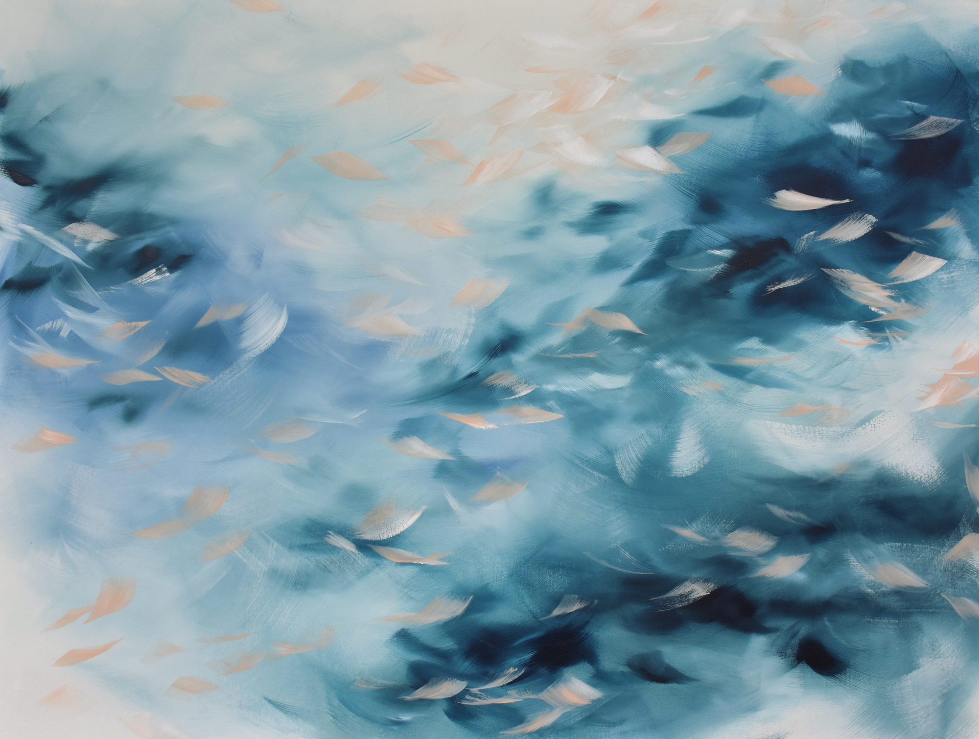 Calm by Eva Pearl – Acrylic on gallery canvas stretched and ready to hang. Signed on the back. It has a strong wire at the back. Sides of the painting are painted as a continuation in the same colour to match the artwork so there is no need to frame. Signed with a Certificate of Authenticity.