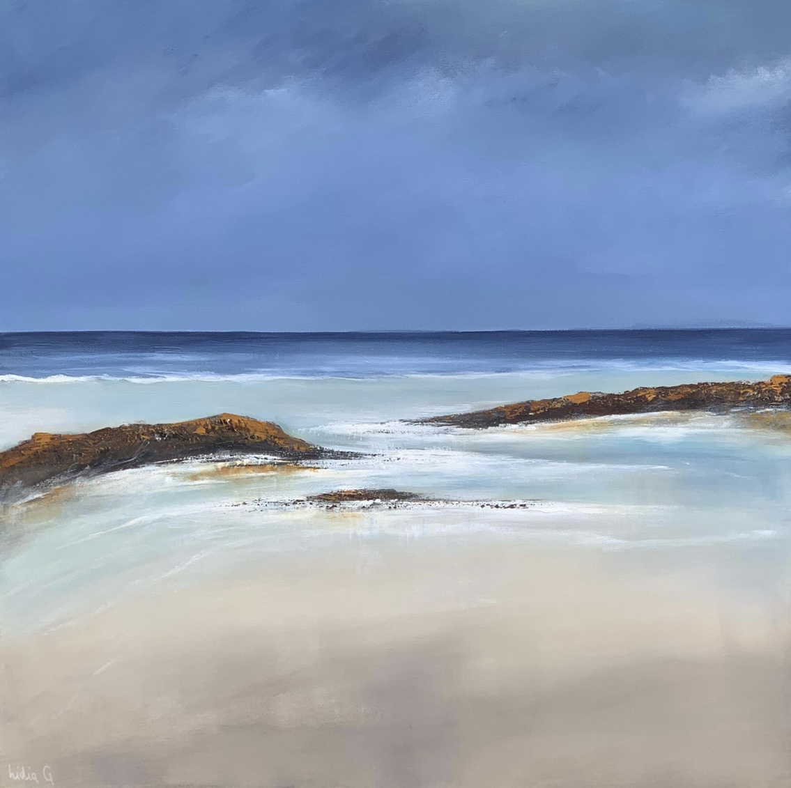 Inspired by the incredible diversity of the Australian landscape from its rugged coastlines, snow-capped mountains and the idiosyncratic landscape of the sandy desert with its sun baked monoliths and rainforests. The painting continues on the edges and comes with professional wire hanger and a Certificate of Authenticity.